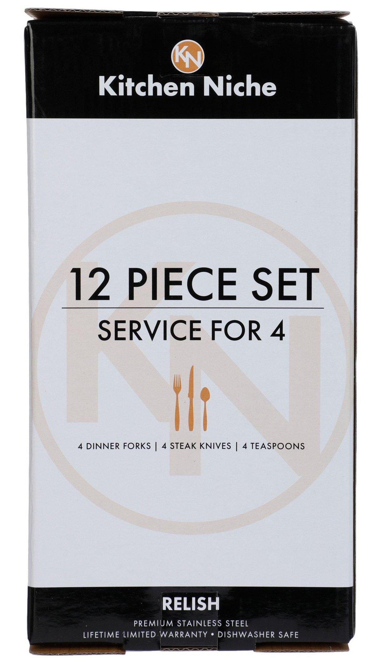 Introducing the 12 Pc Stainless Steel Relish Flatware Set, a perfect blend of elegance and durability. This set includes 4 dinner forks, 4 steak knives, and 4 teaspoons, all crafted from high-quality stainless steel. Ideal for both everyday use and special occasions, each piece boasts a sleek design that complements any table setting. Elevate your dining experience with this versatile and stylish flatware set.