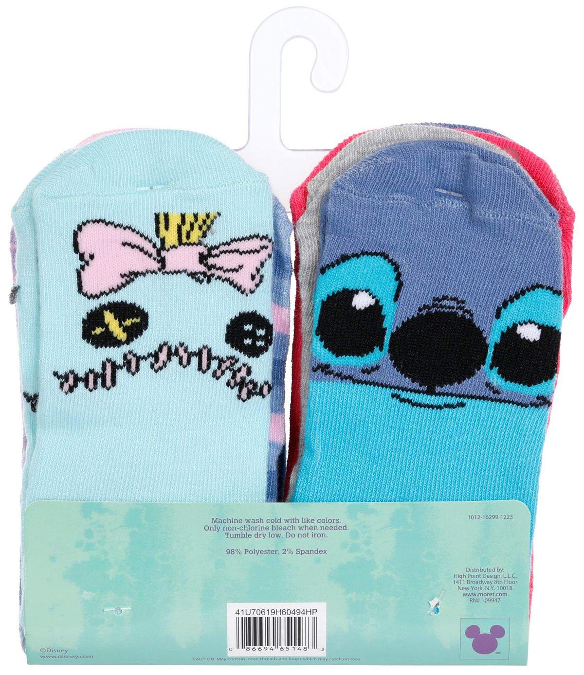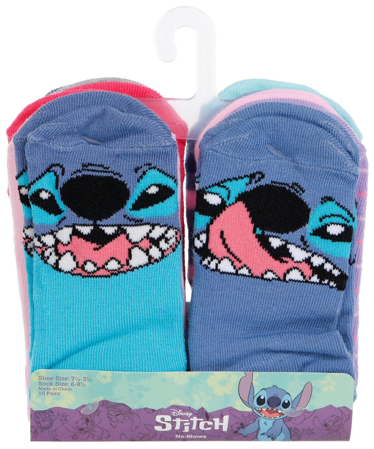 This girls’ Lilo & Stitch no-show sock pack includes 5 pairs featuring vibrant character designs and tropical prints. Made from soft, stretchy fabric for all-day comfort, they fit shoe sizes 410 and are perfect for staying hidden under shoes while adding playful Disney style to any outfit. Ideal for everyday wear, these socks bring fun and flair to little feet.
