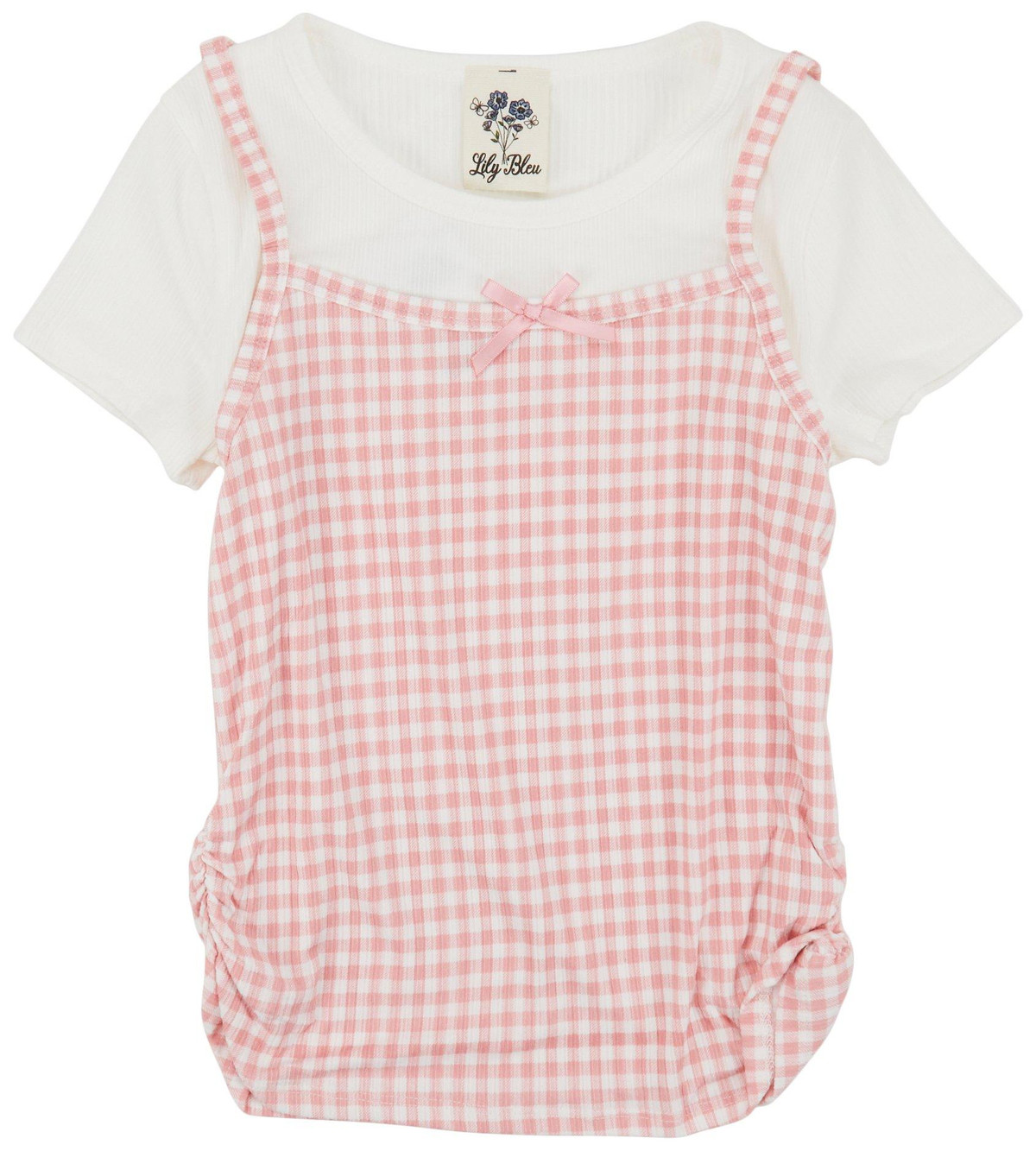 Lily Bleu Big Girls 2Fer Gingham Print Top