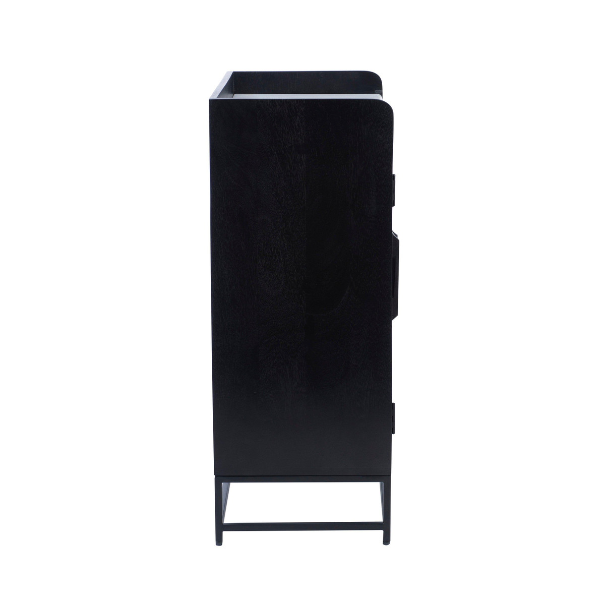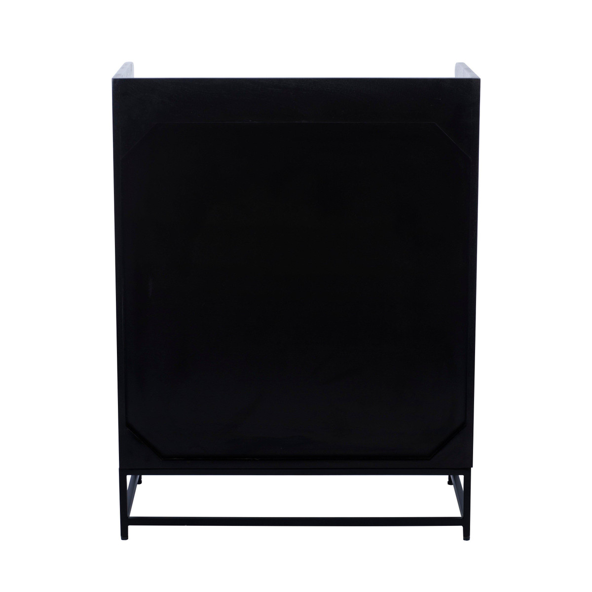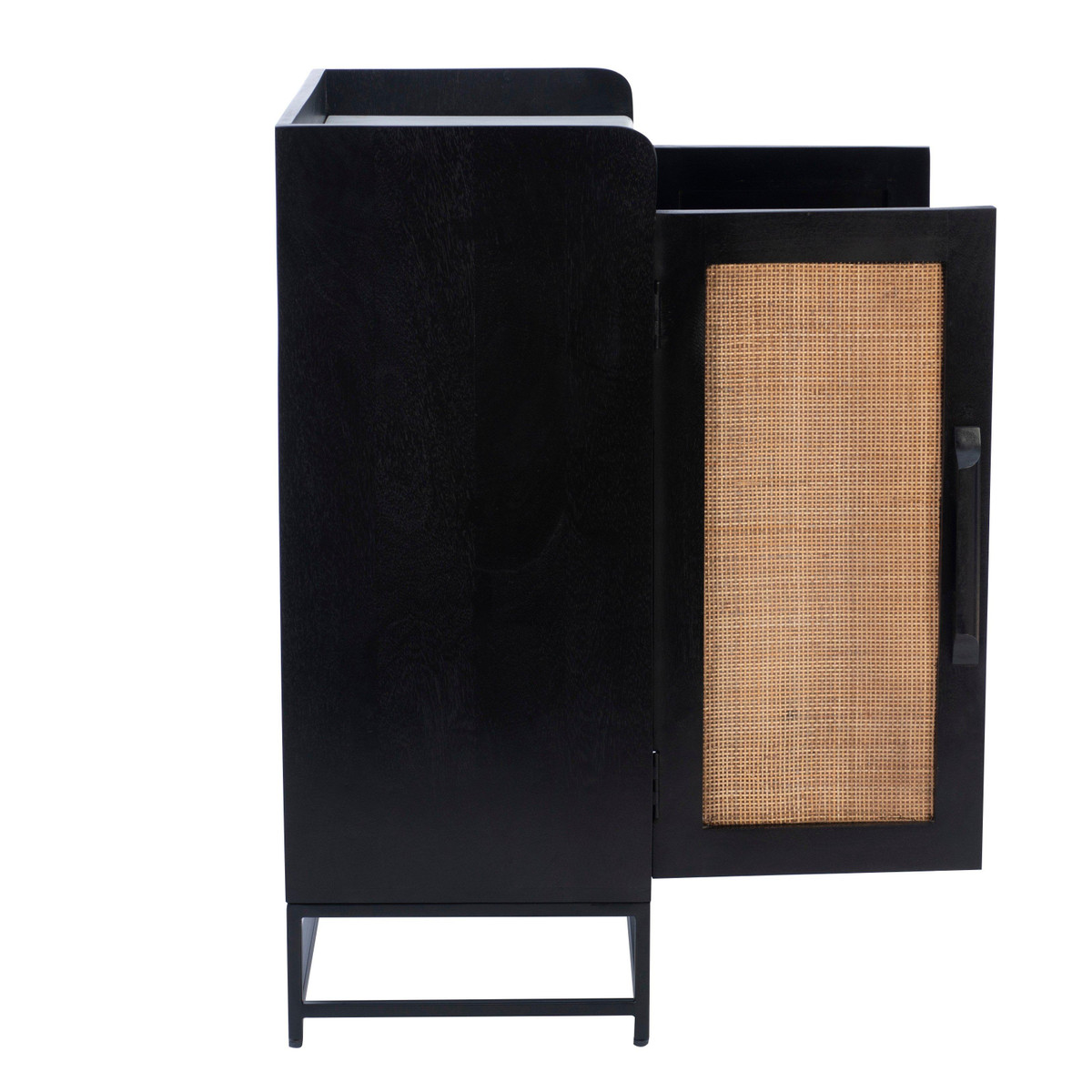 The Janie Rattan Bar Cabinet boasts a classic midcentury aesthetic for the quintessential home bar centerpiece. It features 4 shelves, 6 hanging racks for wine glasses, 3 cubbies for storing bottles and a wooden drawer for corkscrews and utensils. A white marble top is surrounded by a wooden border, creating a dream working station for casual and expert bartenders alike. The frame is constructed of solid mango wood and supported by an iron. Measures 28 in. W x 14.5 in. D x 36.5 in. H.