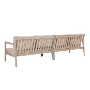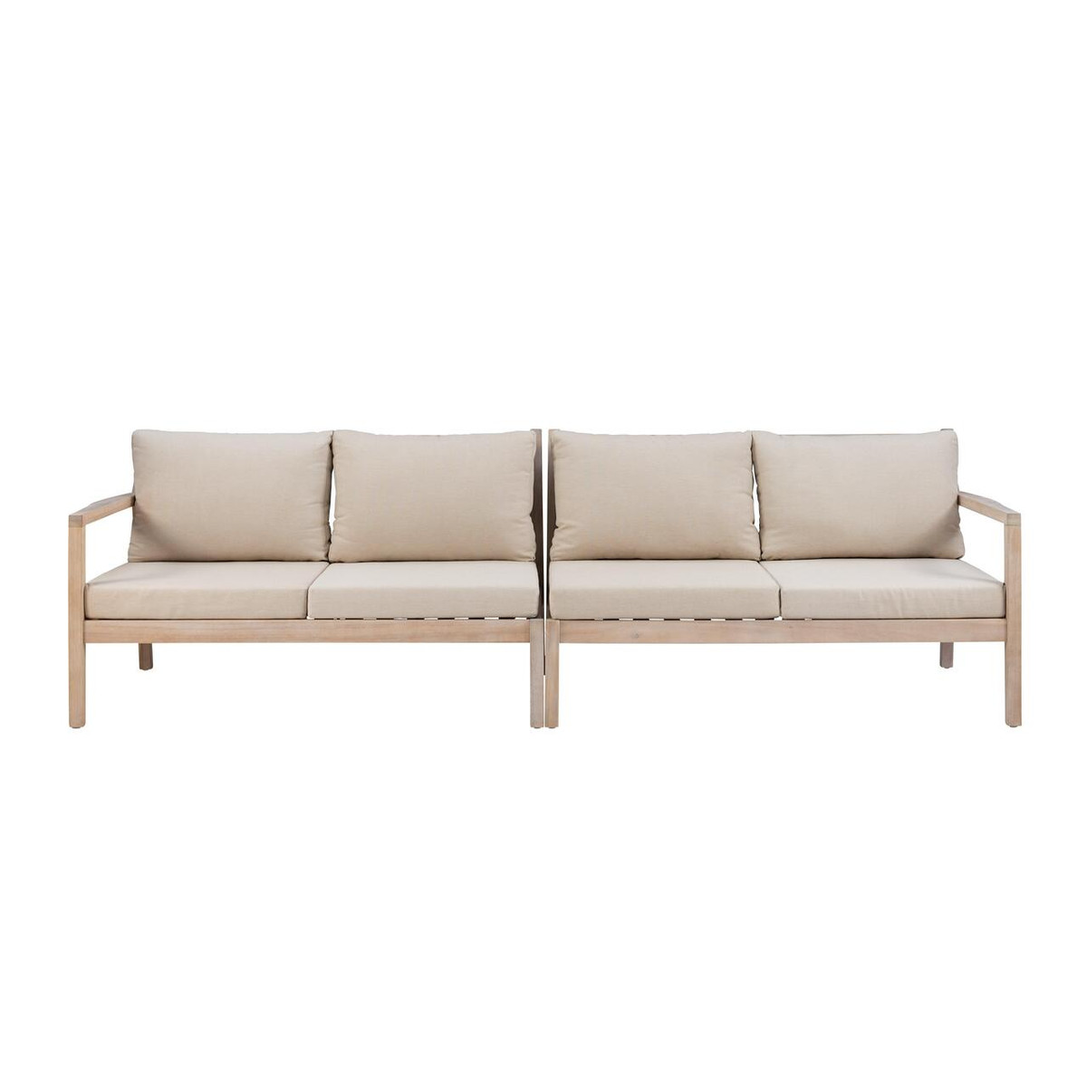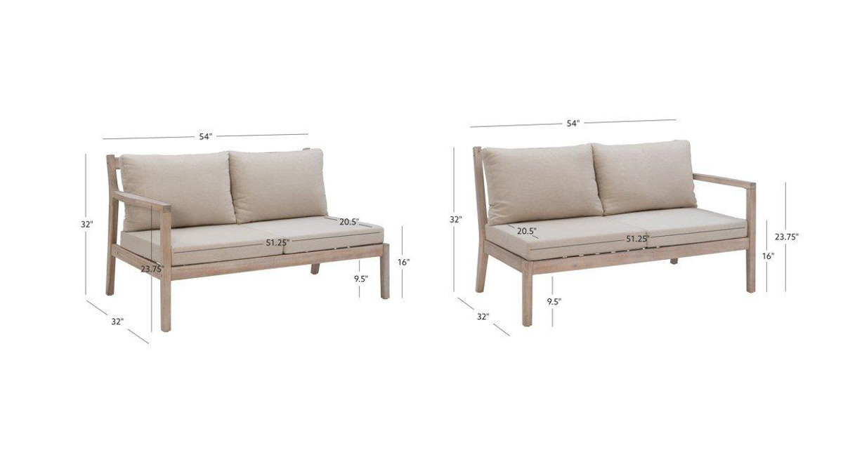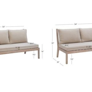 The 2 Pc. Teagon loveseats are designed to withstand the elements. They are the perfect seating solution for your patio, porch or roof deck. The high-density cushions are upholstered in water and up resistant olefin fabric, and the solid acacia wood frames are also weather resistant and built to last. A natural oil-based stain highlights knots and patterns of the woodgrain while providing additional protection. Supports up to 400 lbs. each. Measures 54W x 32D x 32H