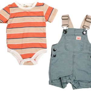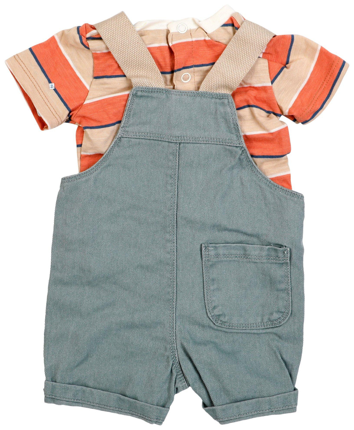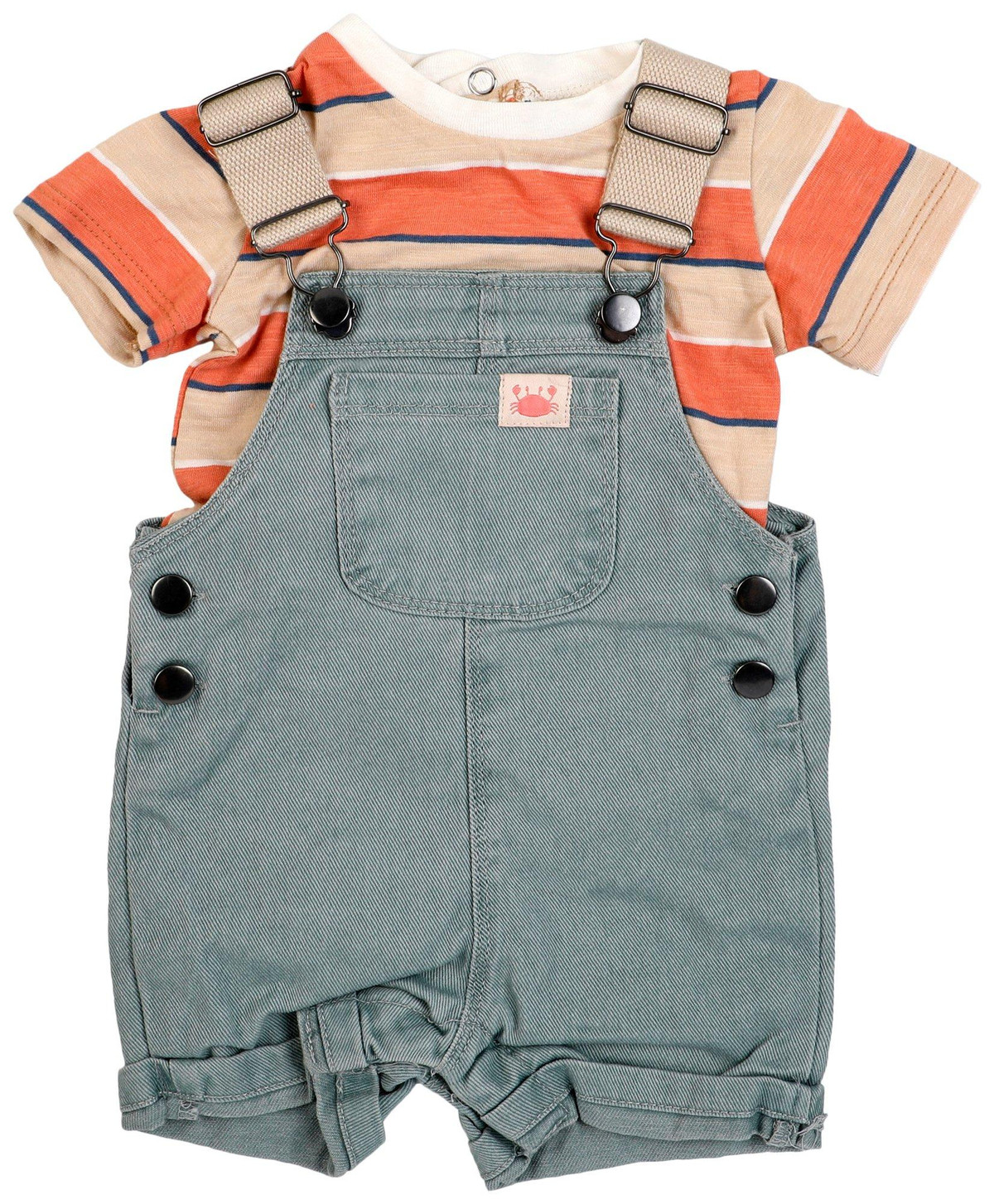 Elevate your casual look with this 2 Piece Set, designed for comfort and style. This set includes a striped tee and woven short overalls with a cuffed hem. Perfect for active days with the family, this set combines comfort and style. Fabrication is: Shirt 60% cotton, 40% polyester, Overalls 100% cotton.