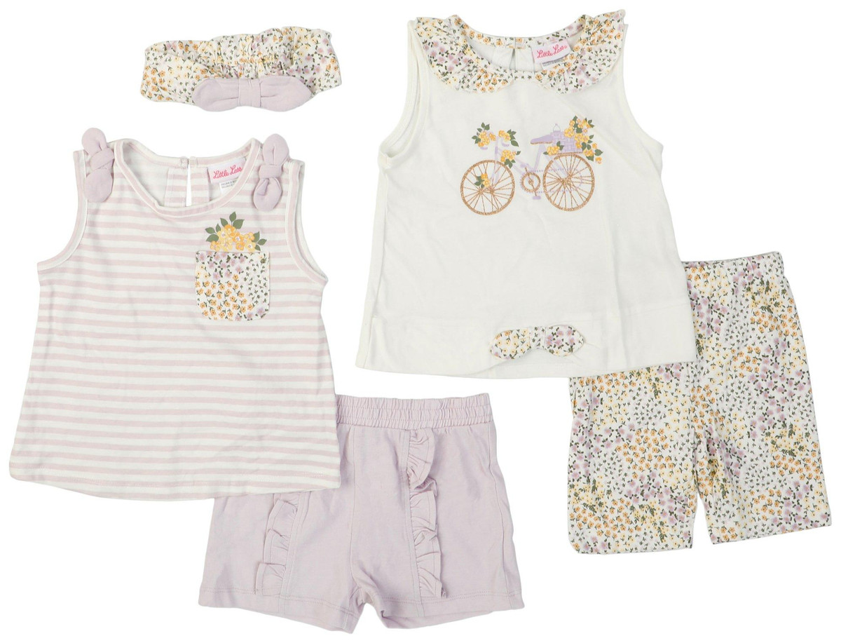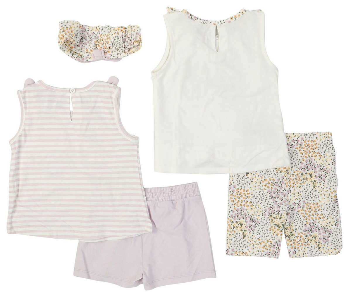Mix, match, and make every day adorable with this 4-piece set! Featuring two breezy sleeveless tops, two comfy pairs of shorts, and a bonus headband to tie it all together, this set is perfect for sunny days and playful moments. With cheerful prints and soft fabrics, its a versatile wardrobe win for your little one.