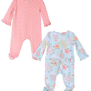 This two pack set of footed pajamas offers cozy comfort for your little one. Made with soft breathable fabric, each piece keeps baby warm from head to toe. Perfect for bedtime or lounging, these pajamas are designed for easy movement and restful sleep.