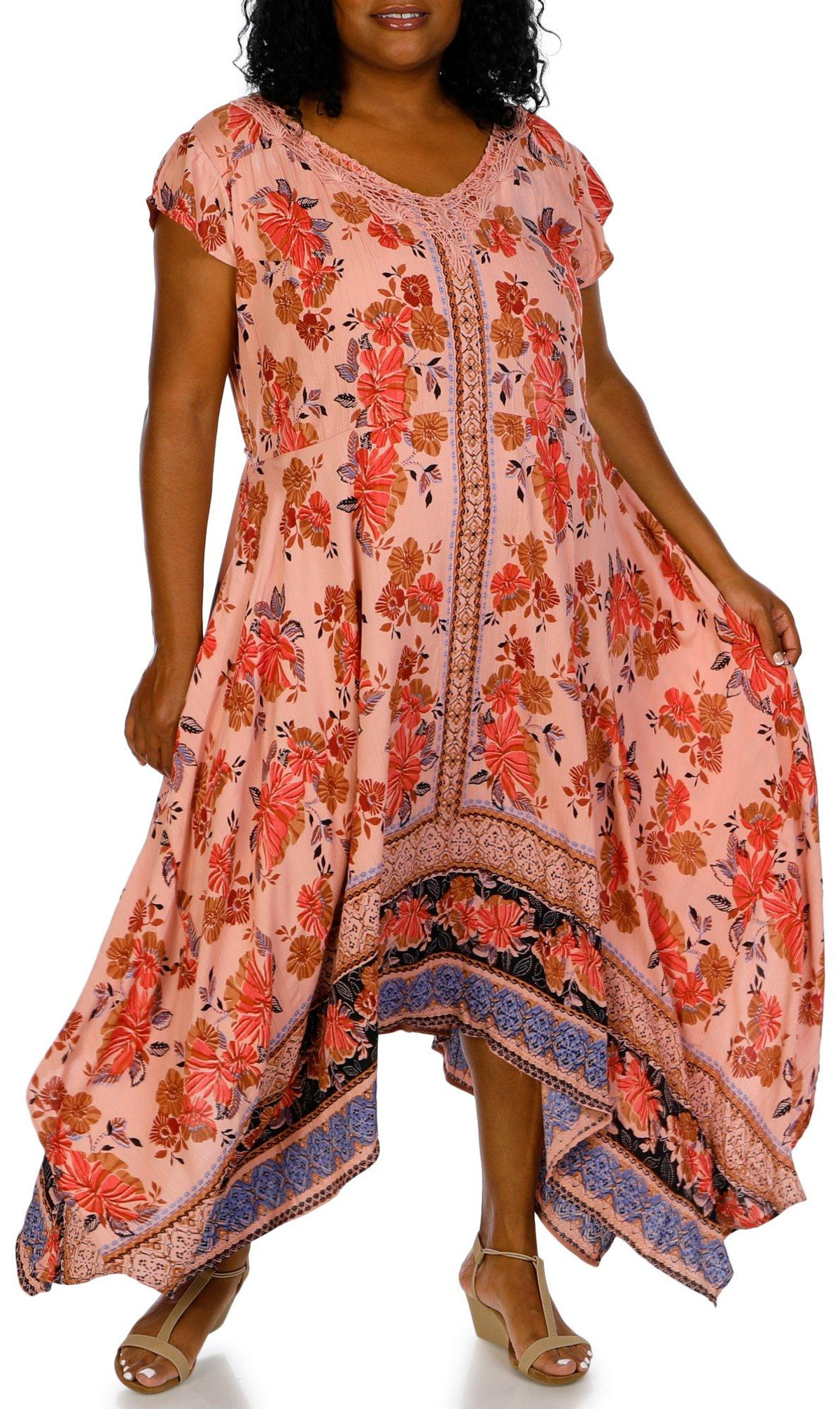 Our Plus Short Sleeve Crochet Trim Border Midi Dress offers a charming floral print with a flattering v neckline. Delicate crochet trim adds a touch of elegance, while the midi length provides a graceful silhouette. Perfect for casual days or dressed up occasions. Fabrication 100% rayon.