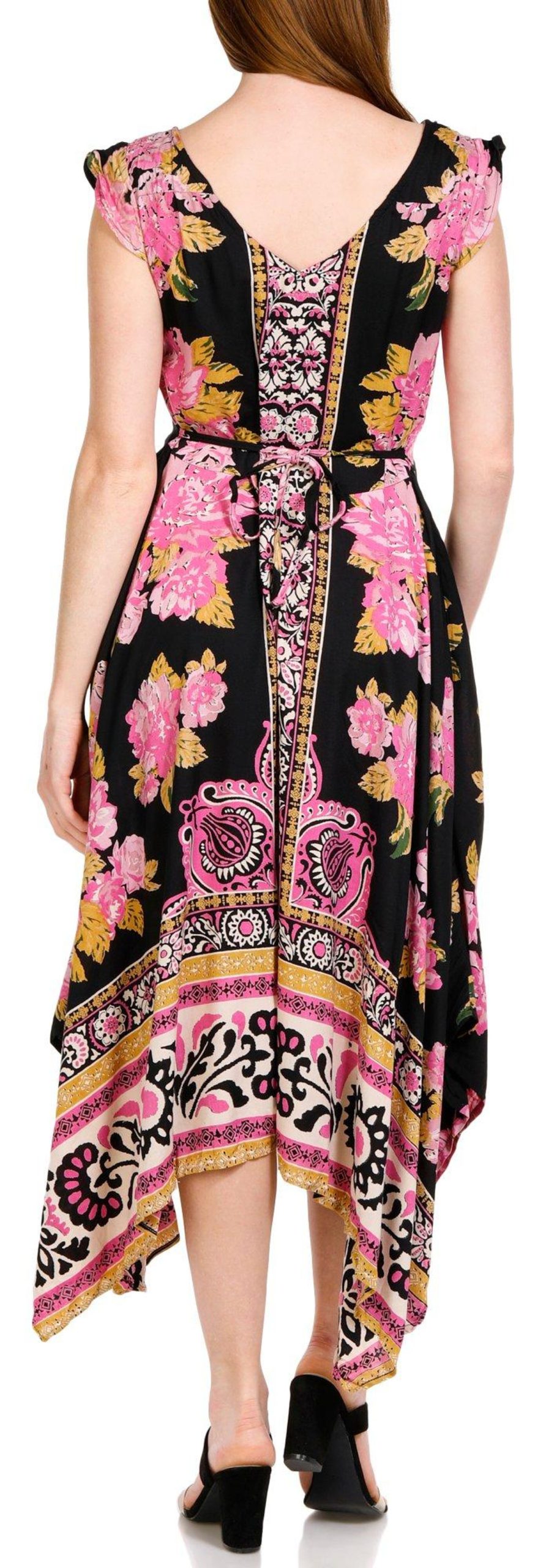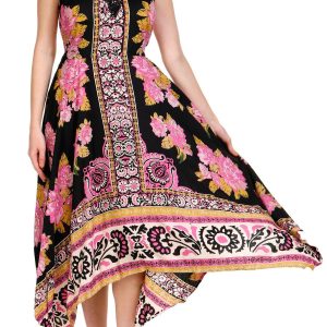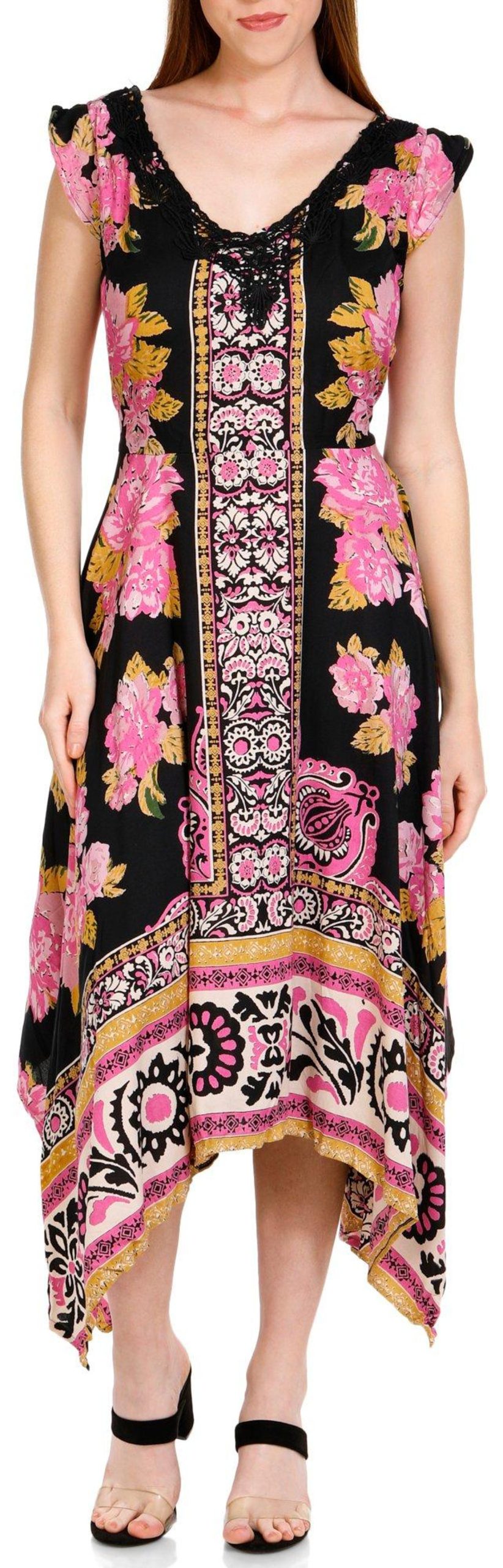 This Sleeveless Midi Dress is a vibrant and stylish addition to your wardrobe. It features a bright floral print pattern that adds a pop of color and a cheerful vibe. The crochet trim accents provide a delicate and elegant touch, making this dress perfect for any occasion.