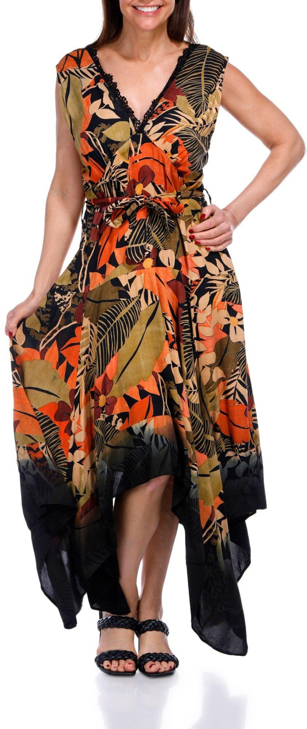 Add a touch of elegance to your wardrobe with this Sleeveless Border Print Midi Dress, featuring a sophisticated V neckline. The border print design adds a unique and stylish flair, while the midi length offers a perfect balance of comfort and chic. The V neckline enhances the dress’s flattering silhouette, making it ideal for both casual and semi-formal occasions.