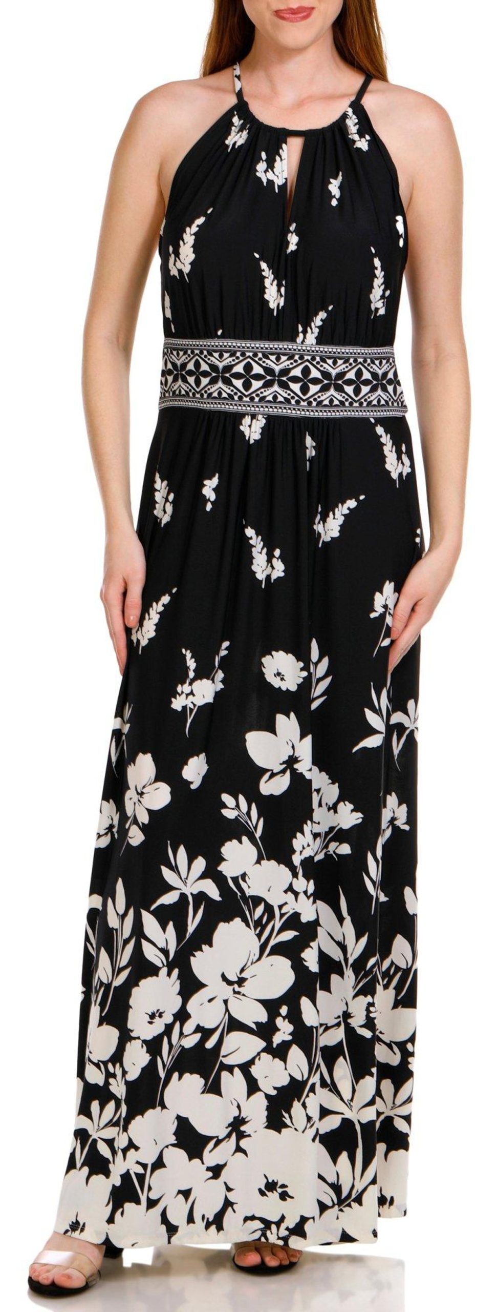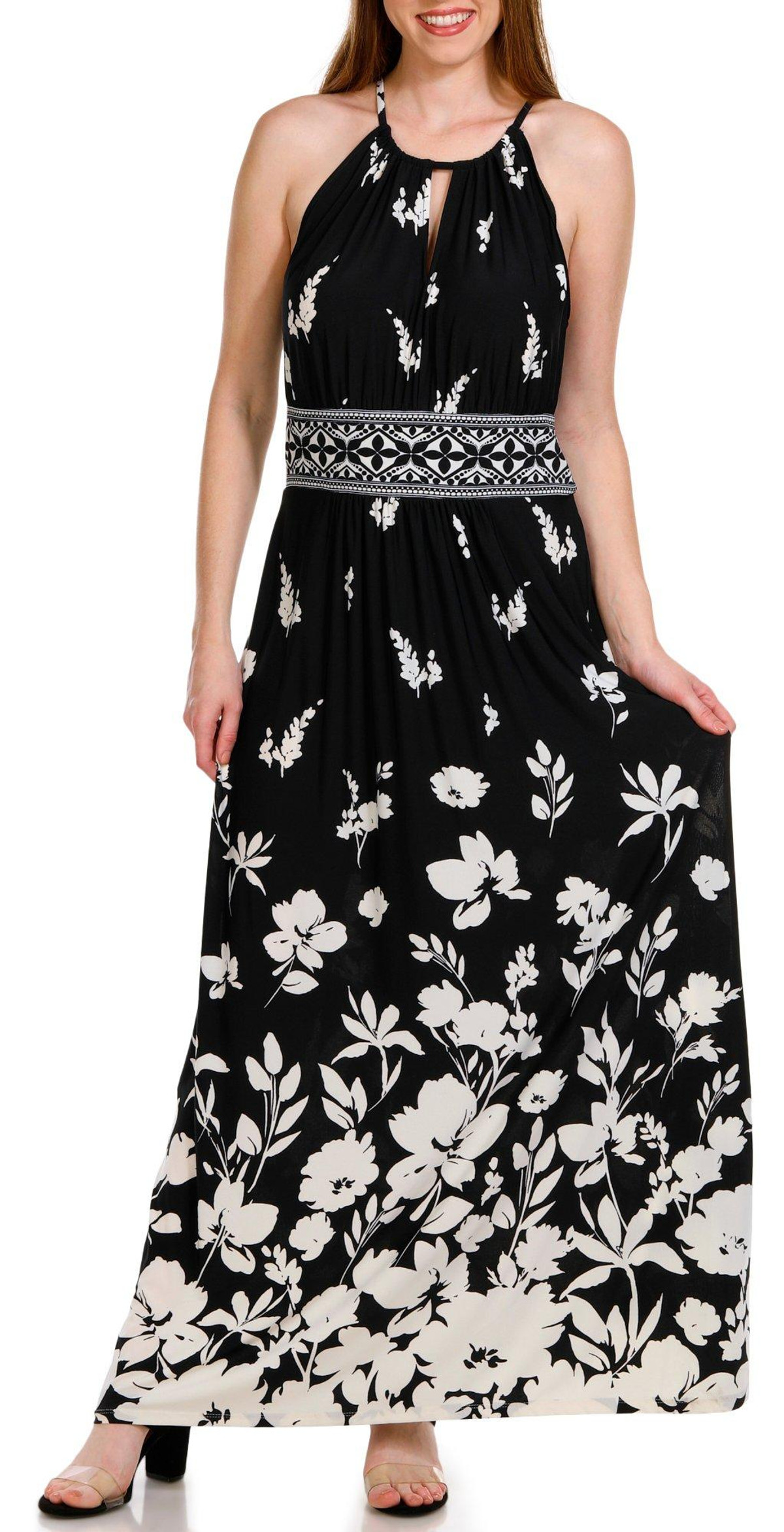 Step into elegance with the Women’s Sleeveless Floral Maxi Dress. This dress features a beautiful floral print, a split neckline, and a keyhole back, adding a touch of sophistication to your look. Made from polyester, it offers comfort and durability. The maxi length ensures a graceful silhouette, making it perfect for any occasion, from casual outings to special events.
