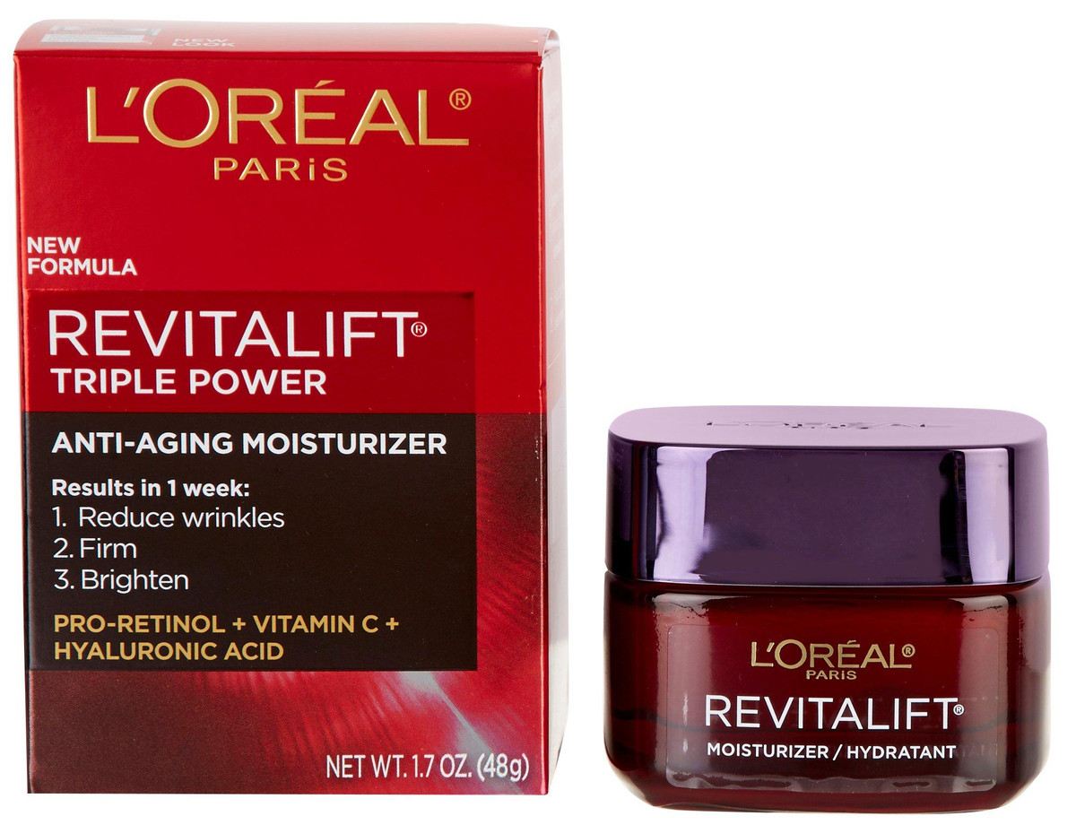 Revitalift Triple Power Fragrance Free Day Cream is an anti-aging face moisturizer, formulated with 3 of the top derm-recommended ingredients: Pro-Retinol, Hyaluronic Acid and Vitamin C to reduce wrinkles, firm and brighten in 1 week. After use skin feels smoother, softer, refreshed. Dermatologist tested, suitable for sensitive skin. Paraben free, mineral oil free, dye free, allergy tested. Layers well under makeup. Also available in Original fragrance and SPF 30. 1.7 oz.