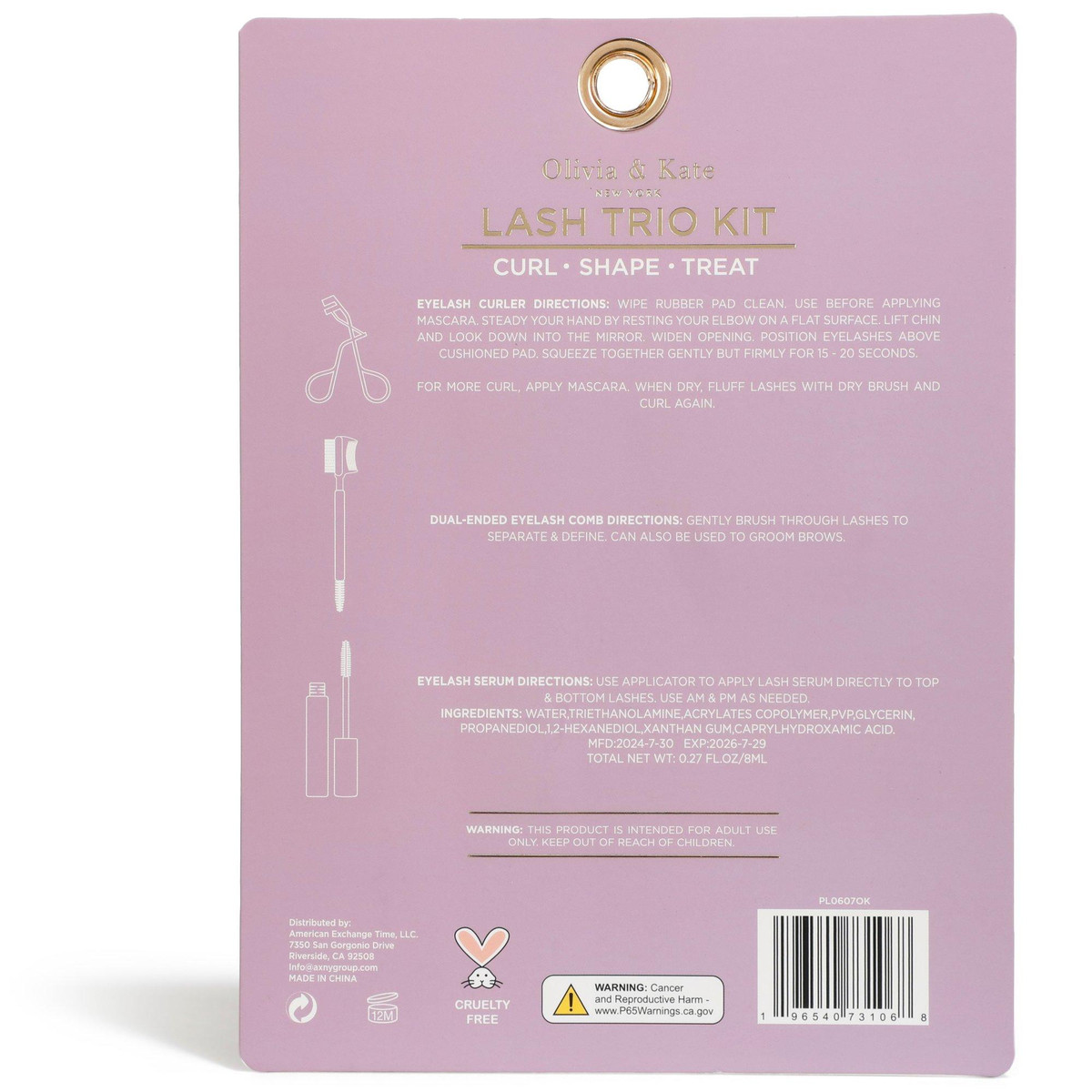 This Lash Trio Kit features an eyelash curler, dual-ended eyelash comb and eyelash serum. Curl, shape and treat your lashes like royalty with this lash kit.