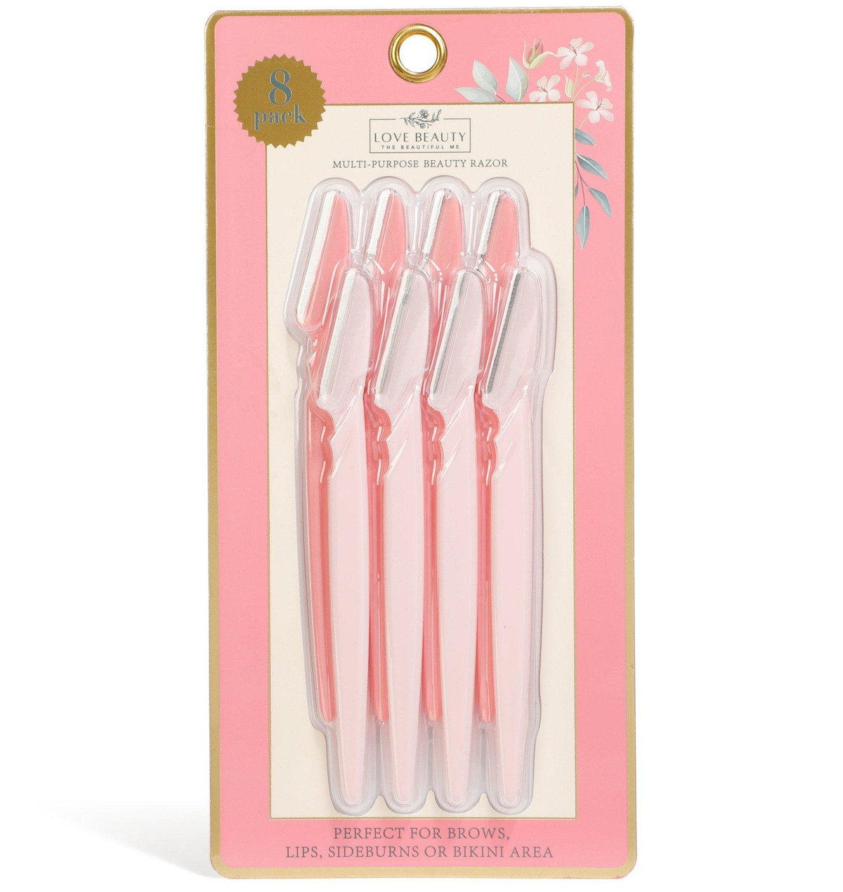 These stainless steel beauty razors easily shape and remove hair. Use for sensitive areas around lips, sideburns, eyebrows or bikini area. Protective blade cover included for safety.