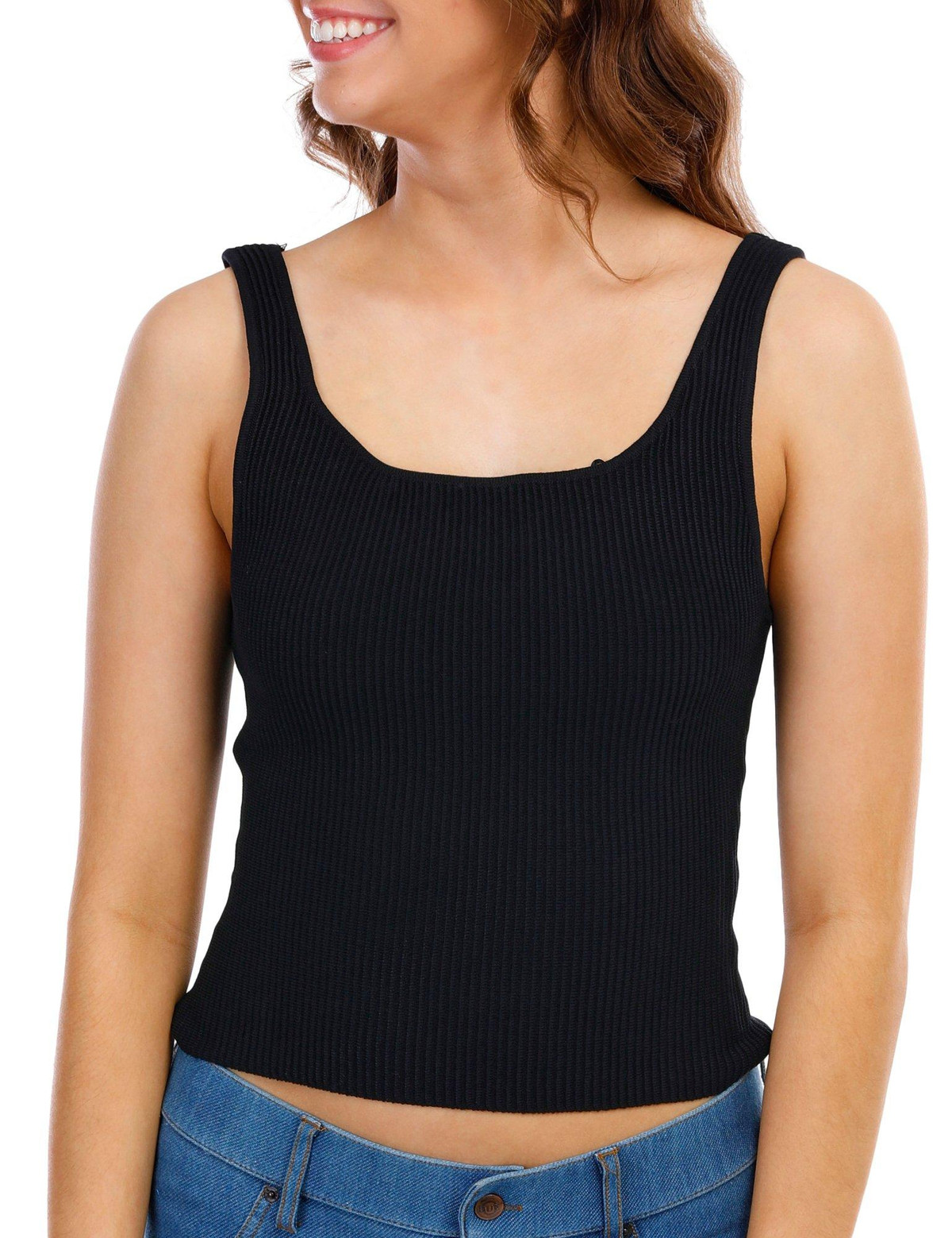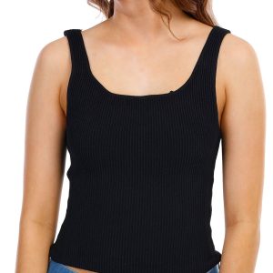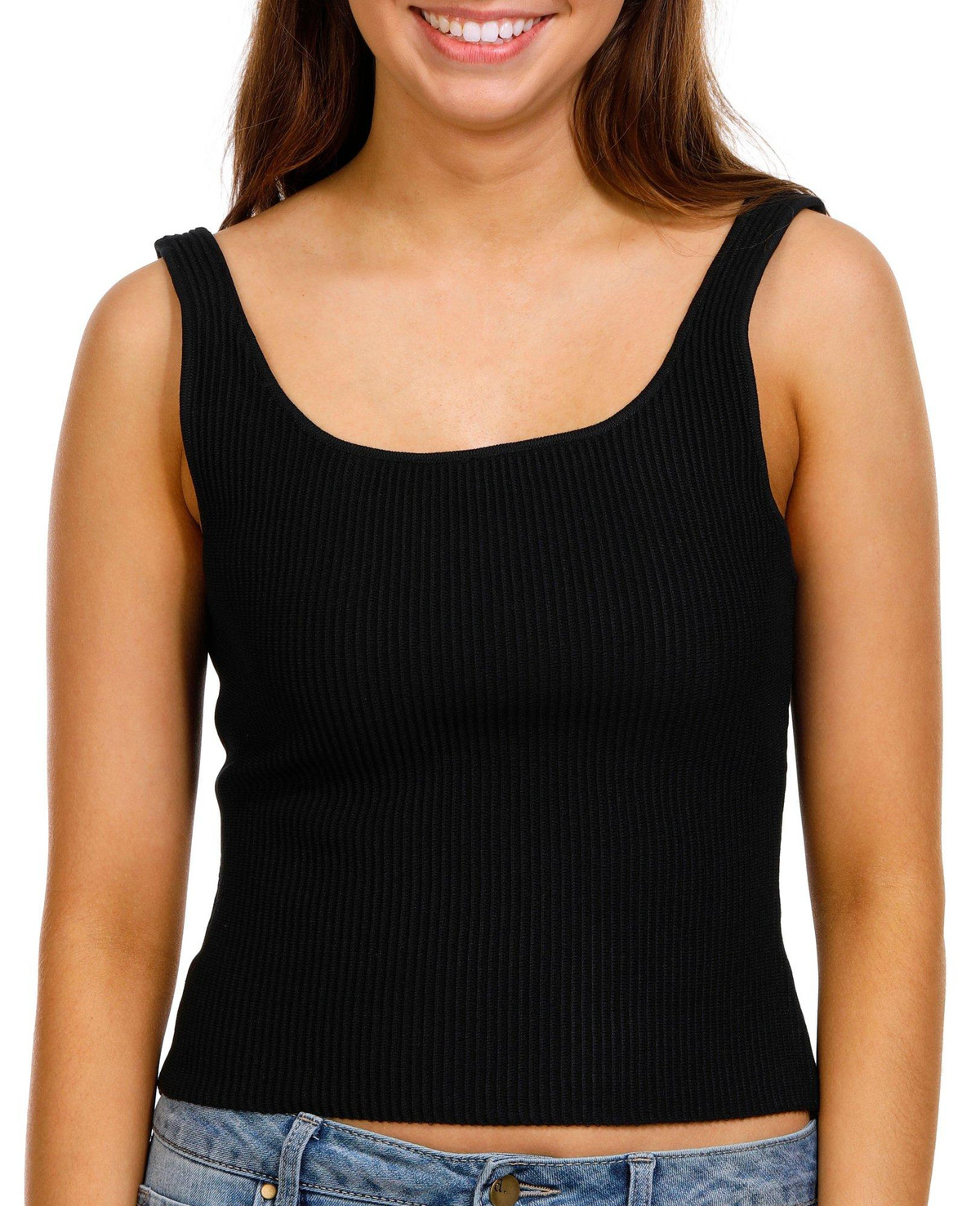 The Juniors Ribbed Sleeveless Sweater Tank Top, made from a blend of nylon and viscose, features a stylish solid ribbed exterior. With a scoop neckline and a 14-inch length, this top offers a chic and comfortable option, perfect for layering or wearing on its own for a trendy, casual look.