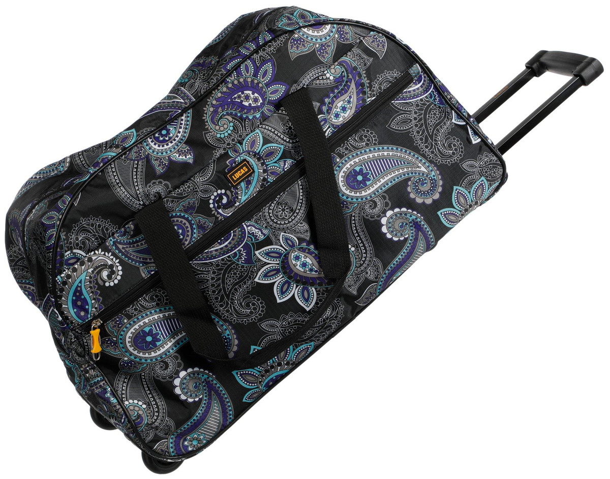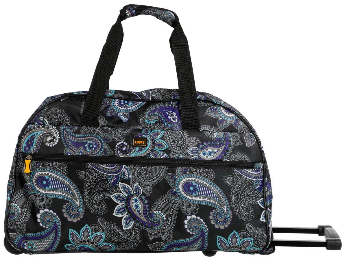 Travel smart and stylish with this 22 in Wheeled Weekender Duffel Bag. Lightweight and collapsible, it fits tight spaces with ease while helping you stay within airline weight limits. Glide effortlessly through airports with smooth-rolling wheels and a telescopic handle. Unique print design helps your bag stand out from other bags. Durable, elegant, and ready for any journeythis bag is your go-to travel companion. Measures approximately 22 in x 10 in x 14.5 in.