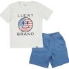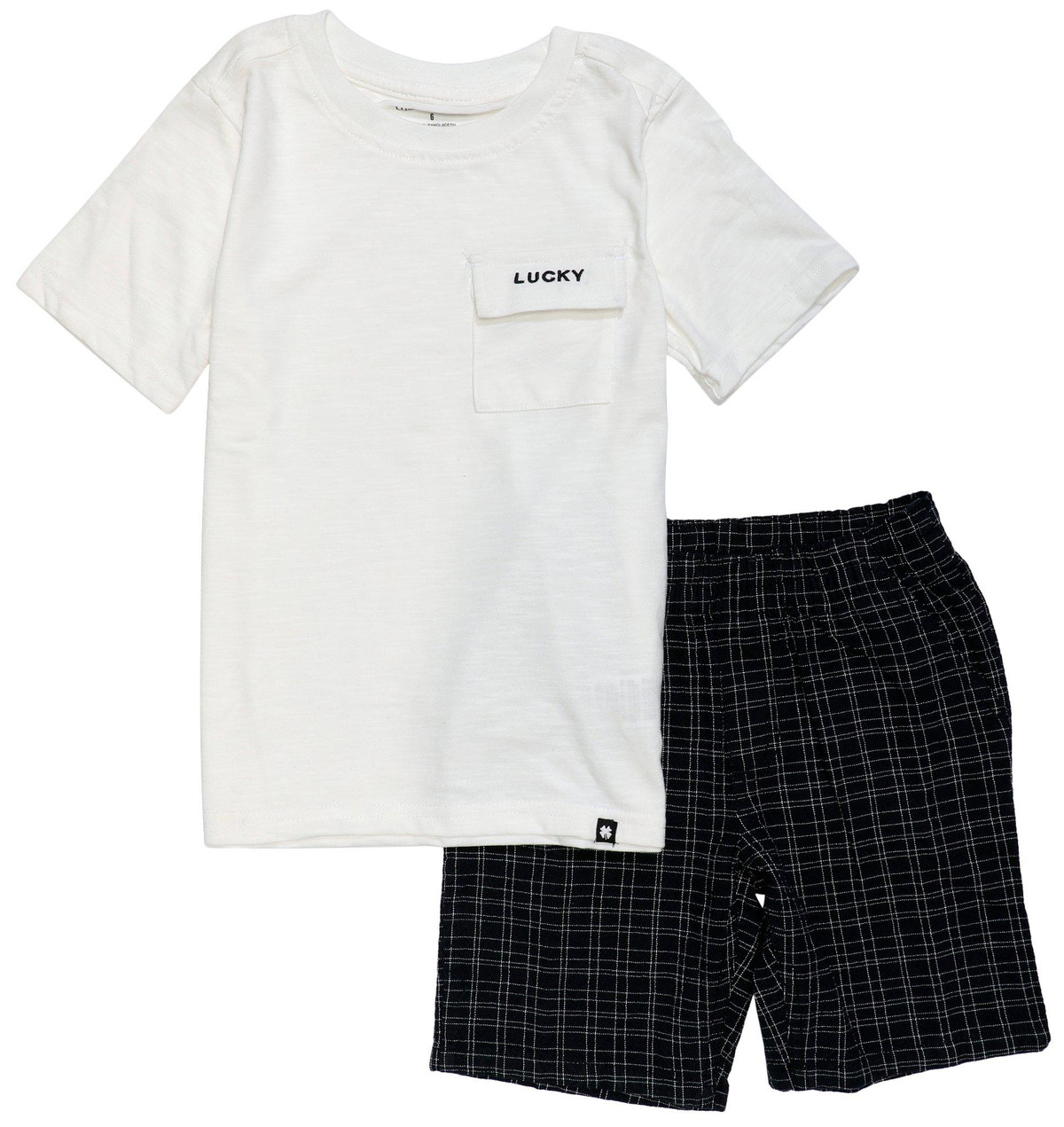 This Little Boys 2 Piece Short Set offers effortless comfort and style. Made from a soft cotton polyester blend, it keeps him feeling great all day. The short sleeve crew neck shirt comes in a classic white color for a clean, versatile look. The solid pull on shorts feature side seam pockets, making them perfect for play, outings, or relaxed everyday wear.