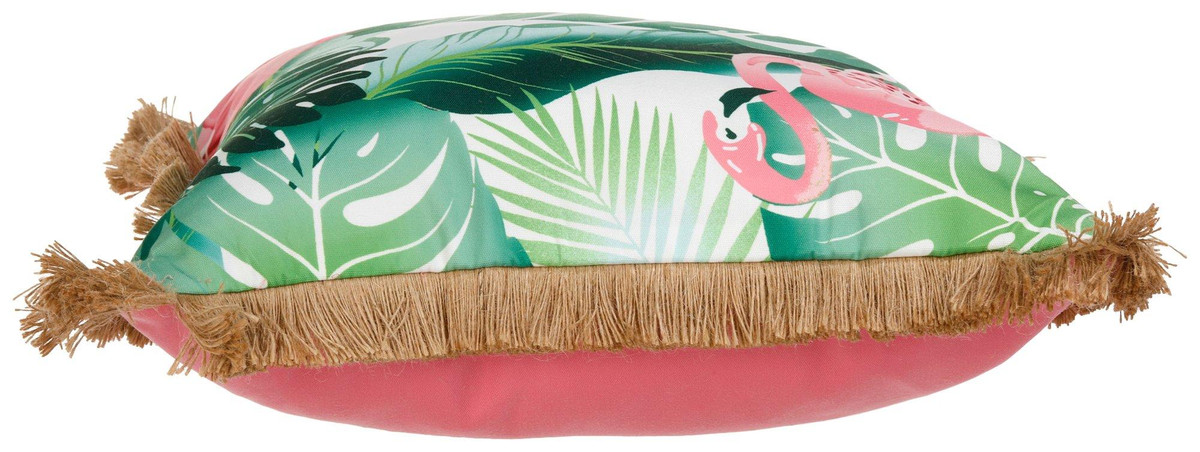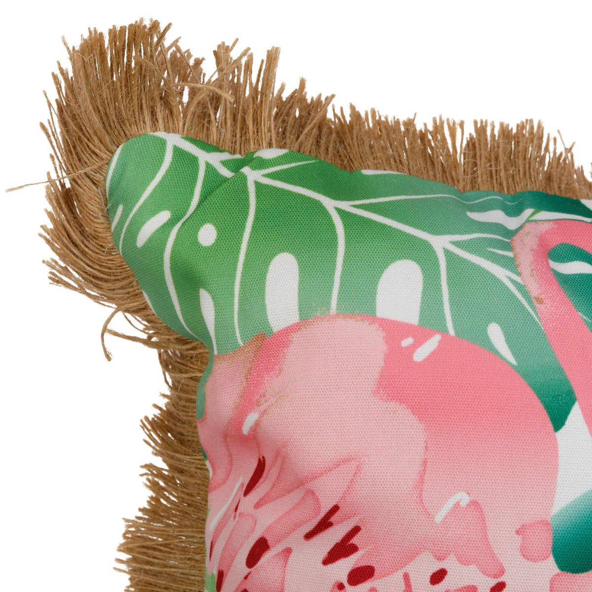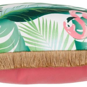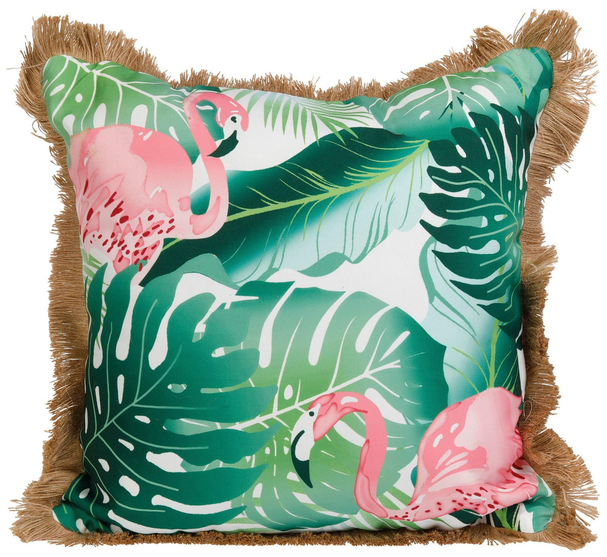 Bring a burst of color and charm to your outdoor space with this 18 in Tropical Outdoor Decorative Pillow. Featuring a vibrant tropical color print, this pillow adds a coastal vibe to any room. Measures approximately 18 in x 18 in.