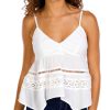 This Juniors Floral Crochet Cami is made from a soft blend of polyester and spandex. It features a vibrant floral print, adjustable straps for a custom fit, padded cups for added comfort, and a stylish bandana hem for a trendy finish.