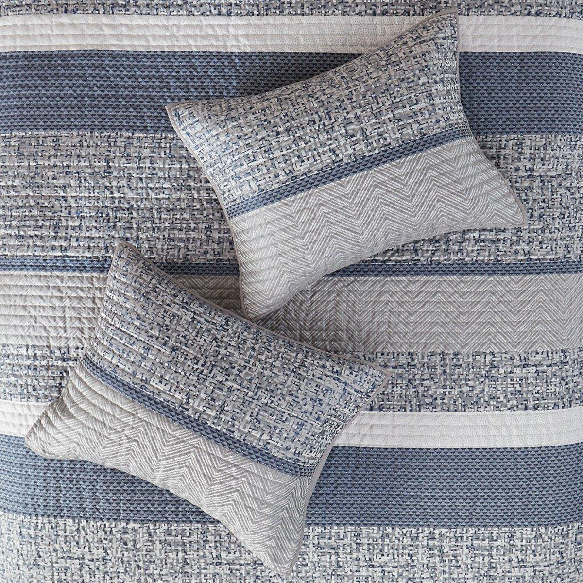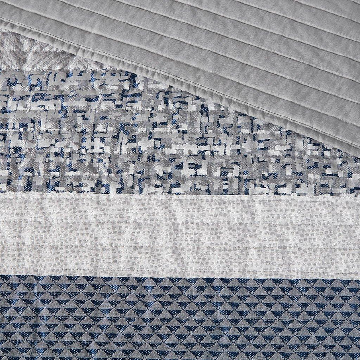 Elevate your bedroom with the Madison Park Rhapsody 6 Piece Reversible Jacquard Quilt Set. Featuring elegant stripe motifs and a chic solid reverse, this quilt set blends glam style with transitional charm. Matching shams and decorative pillows complete the luxurious look, perfect for a stylish refresh. Machine washable for easy care.