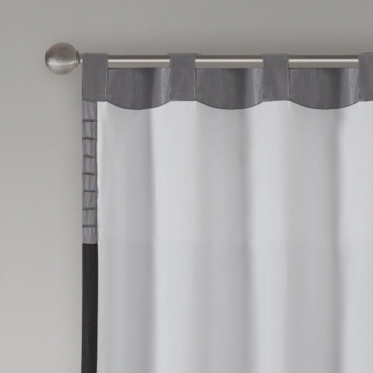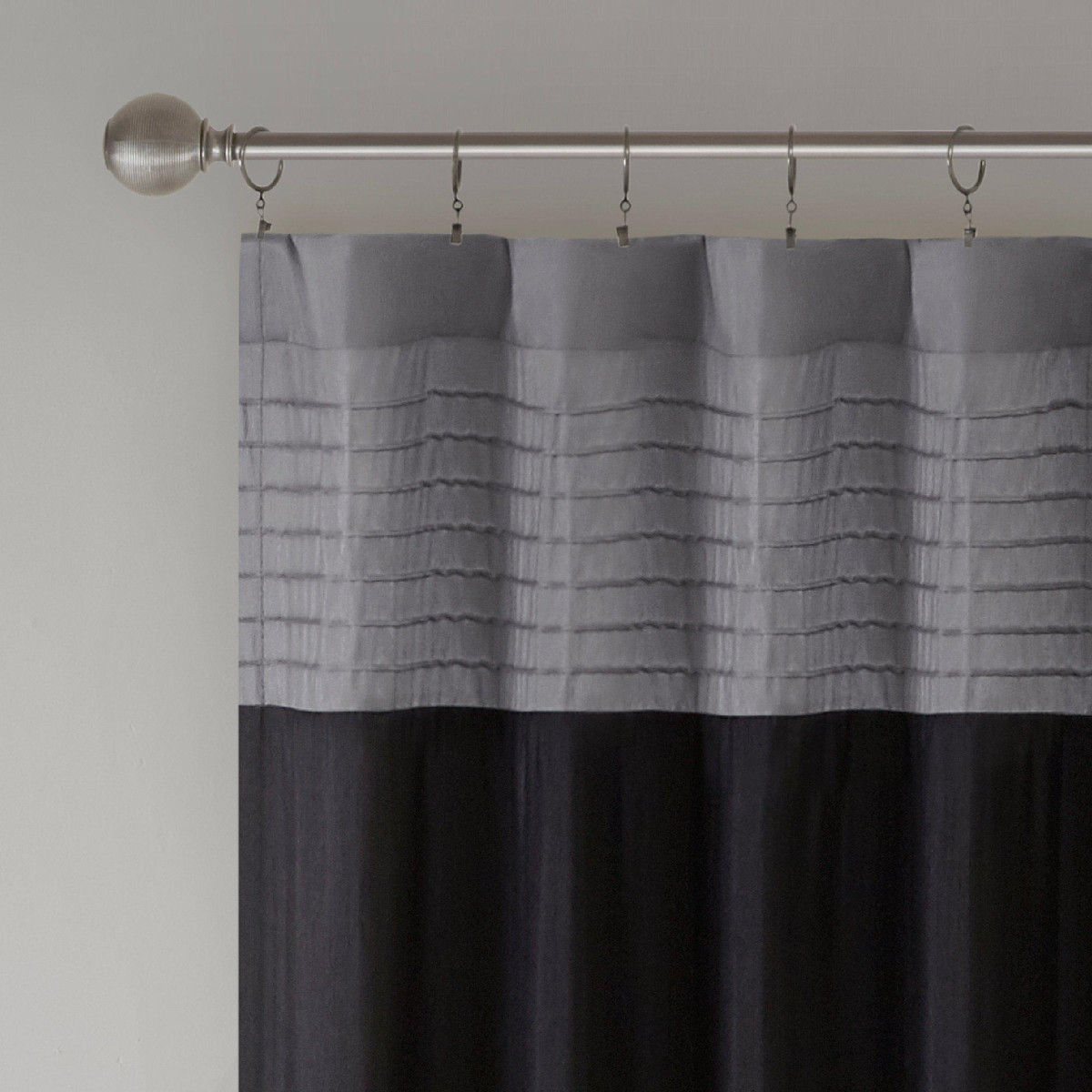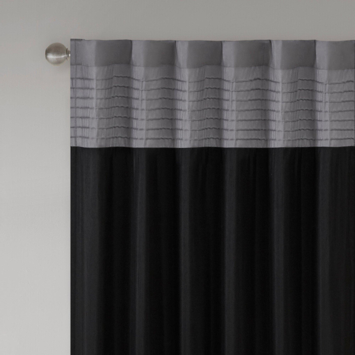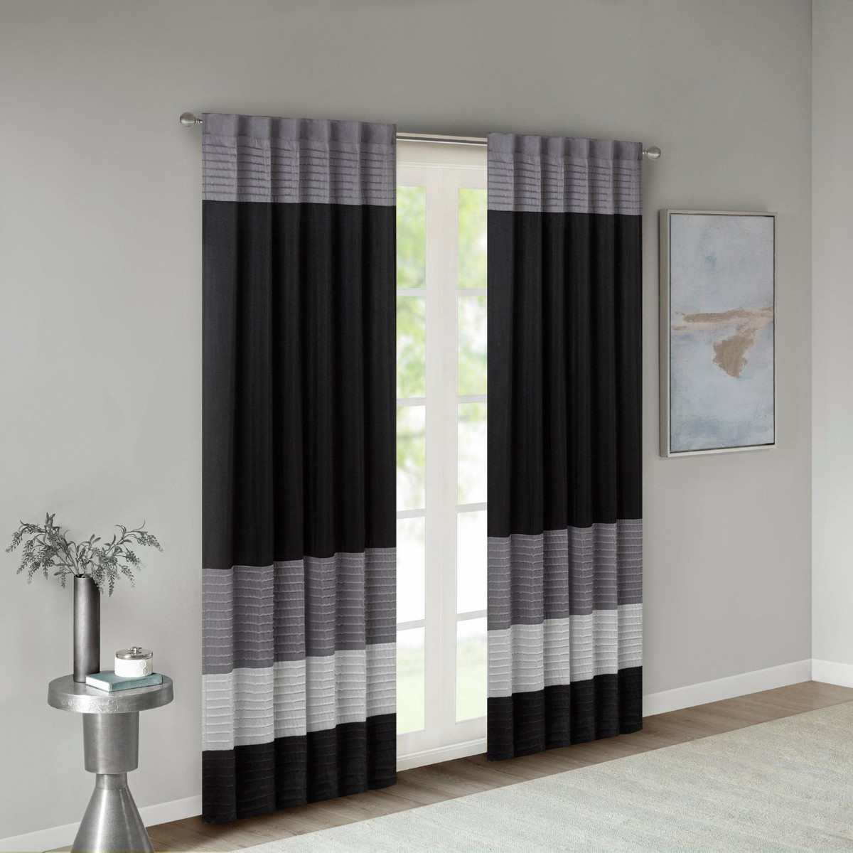 Madison Park Amherst Polyoni Pintuck Window Curtain is a simple way to add style to your room. This window panel features a modern striped design in dark hues of black, charcoal, and silver combined with pintuck detailing for beautiful texture and dimension. The added lining helps filter the perfect amount of light and creates fullness for better drapability. Simply hang using rod pocket or with back tabs for a tailored look. This window curtain fits up to a 1.25 diameter rod.