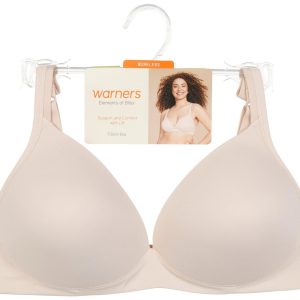 This wirefree bra features a solid color design with scalloped lace trim, natural shaping cups that provide natural lift, plunge front, convertible design for crisscross strap versatility, adjustable straps, and hook and eye back closure. Fabrication 82% nylon, 18% spandex. Style DM1196.