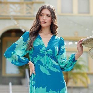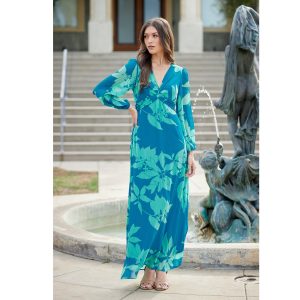 Introducing our Women’s 3/4 Sleeve Floral Maxi Dress, crafted from polyester for a comfortable fit. This elegant dress features a stylish floral print and a flattering v-neckline. Perfect for any occasion, this dress combines timeless charm with modern sophistication..