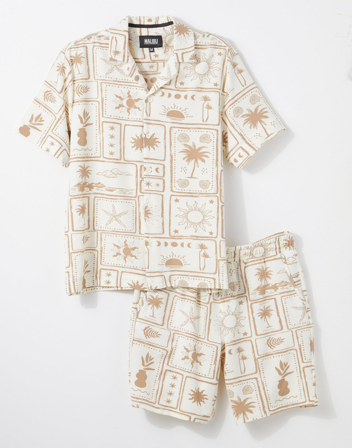 Malibu Mens 2 Pc Tropical Stretch Shorts Set