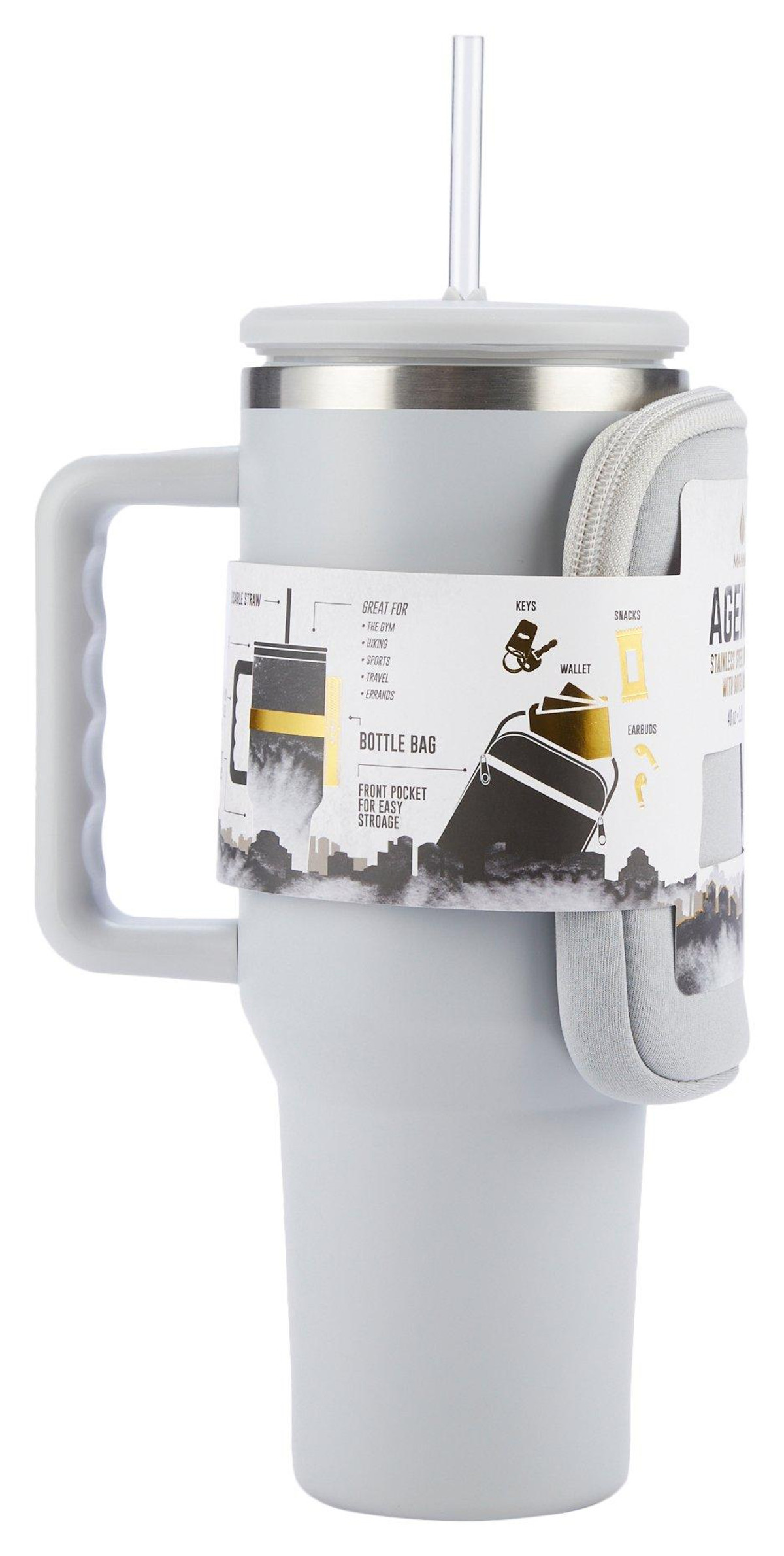 Stay hydrated and organized with the Agenda Stainless Steel Tumbler! This versatile tumbler comes with a bonus detachable bottle bag, perfect for carrying keys, snacks, your wallet, and more. The splash-proof lid and reusable straw make it ideal for on-the-go use, ensuring your drinks stay secure and spill-free. Whether you’re heading to work, the gym, or a day out, this tumbler is your perfect companion. 40 OZ.