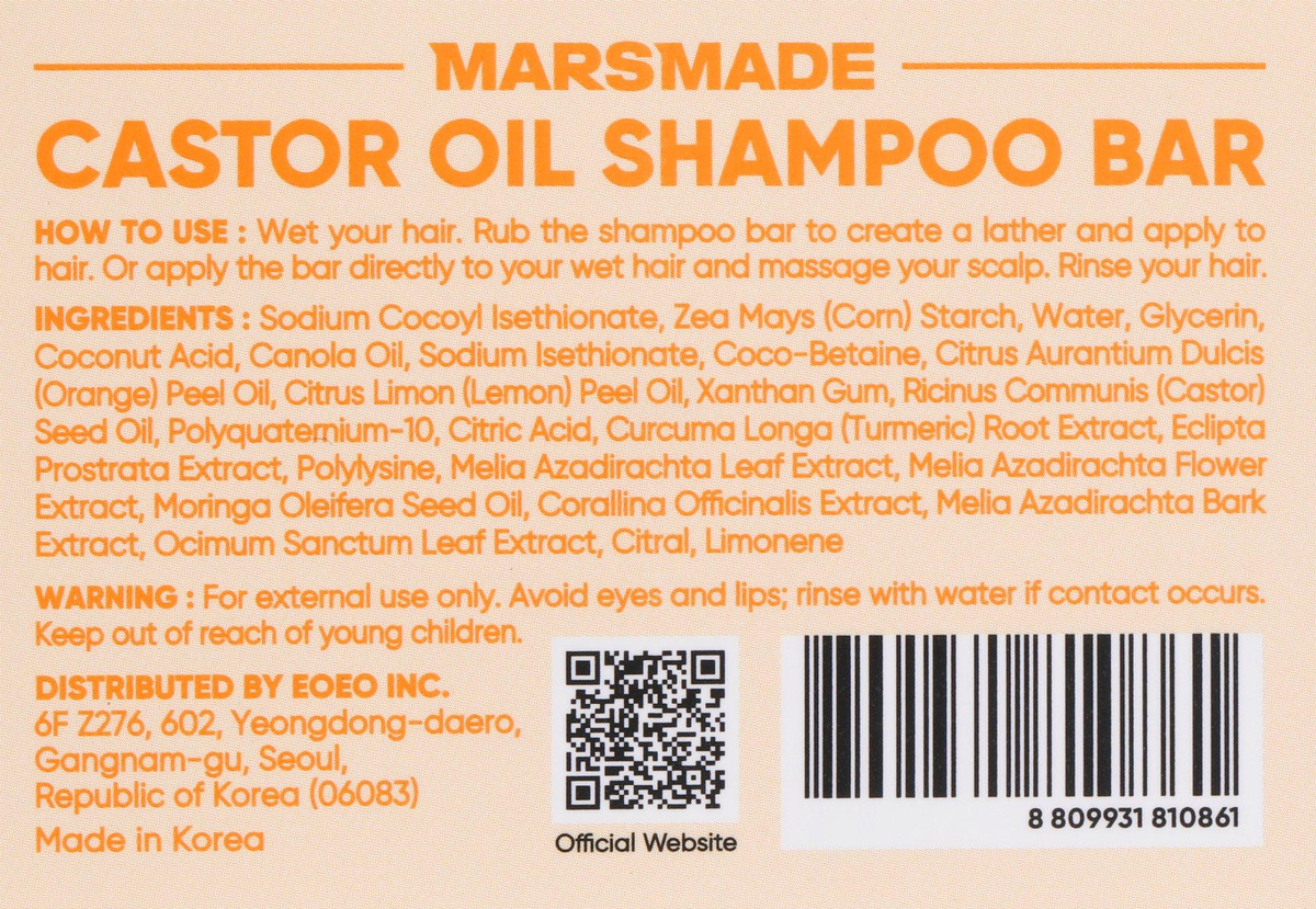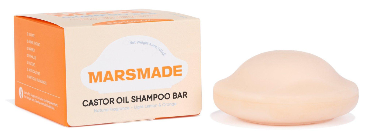 Castor Oil Shampoo Bar nourishes the scalp and encourages fuller, healthier hair with castor oil rich in fatty acids and vitamin E. Lightly scented with natural lemon and orange, it gently cleanses without harsh chemicals. Long-lasting bar replaces 2 to 3 bottles for a low-waste, high-performance clean. Net wt 4.2 oz.