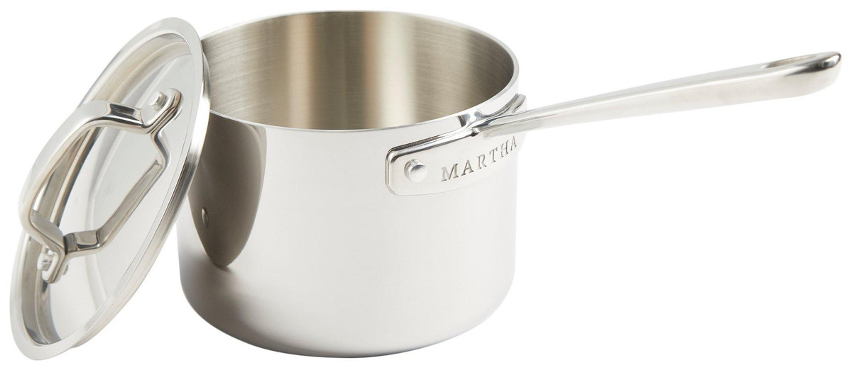 With top-notch durability and quick heat response, the 2-quart Tri-ply Stainless Steel Saucepan offers next-level searing, frying, and baking. The non-reactive interior layer maintains the natural taste and flavors of the dish without leaving a metallic aftertaste and the chef-grade 18/10 stainless steel cookware responds and distributes heat quickly from the base to the rim.