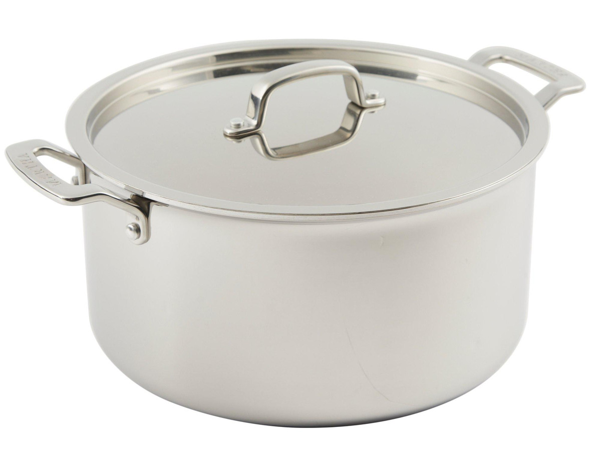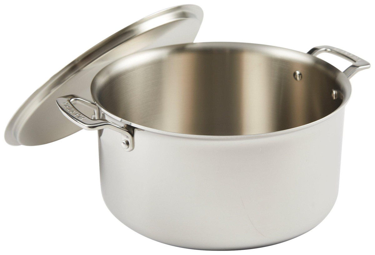 With top-notch durability and quick heat response, the 8-quart Tri-ply Stainless Steel Stock Pot offers generous servings of soup bases, seafood boils, and more. The non-reactive interior layer maintains the natural taste and flavors of the dish without leaving a metallic aftertaste and the chef-grade 18/10 stainless steel cookware responds and distributes heat quickly from the base to the rim. Measures approximately 14.25 in x 11.3 in x 6.9 in.