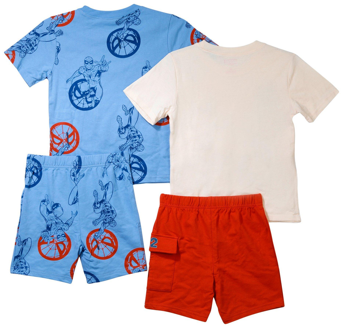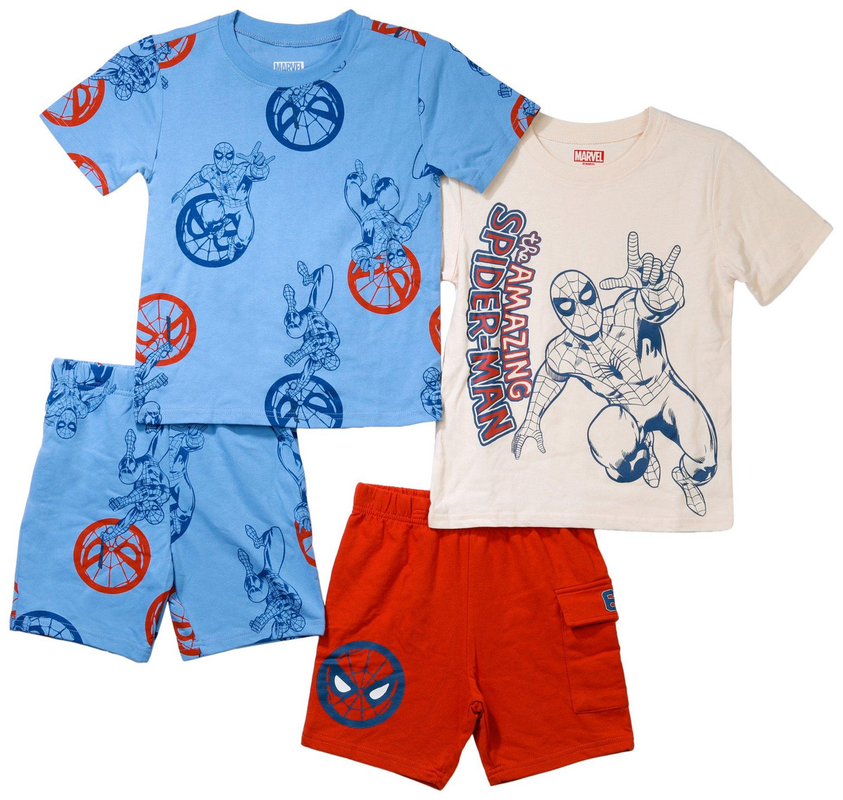 This Boys’ 4-Piece Spider-Man Set makes dressing easy with two cute matching sets for effortless styling. Featuring two crew neck tops with bold Marvel Spider-Man screen prints, this set is perfect for little superheroes. It includes two shortsone in red and one in blueboth designed with an elastic waistband for a secure and flexible fit. Whether he’s playing, adventuring, or relaxing, this set keeps him comfortable in true superhero style.