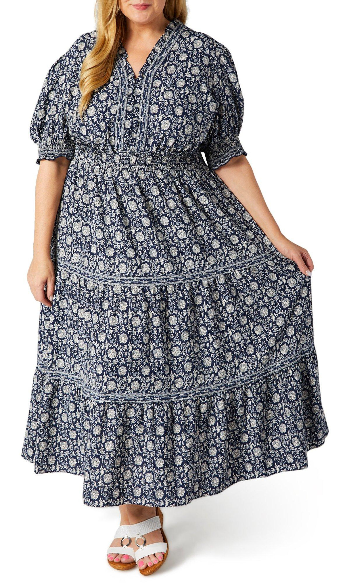 Max Studio Plus Short Sleeve Tiered Maxi Dress
