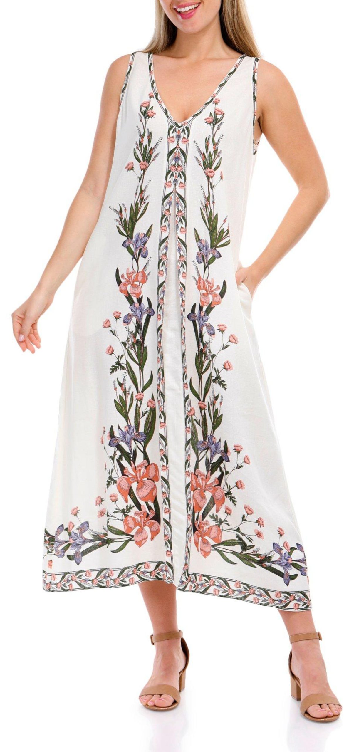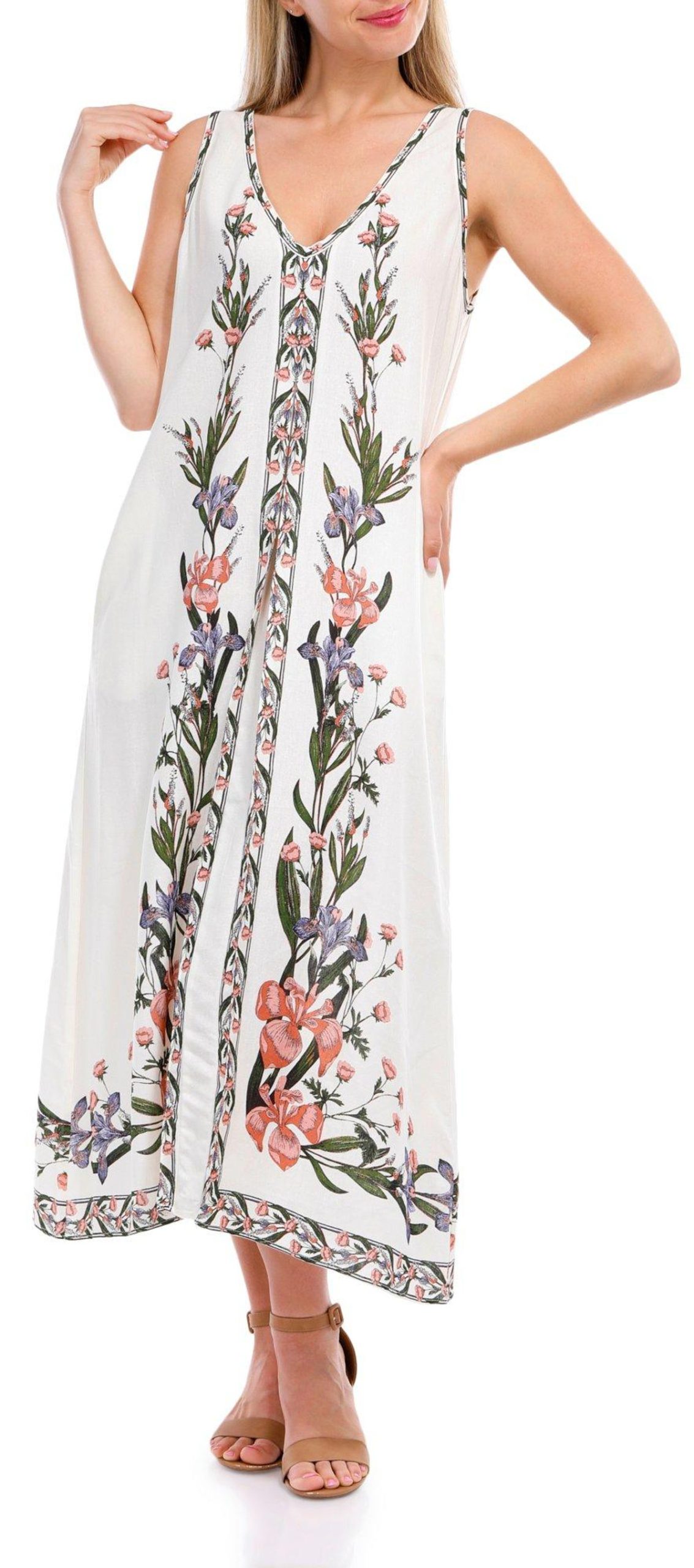 Introducing the Linen V-Neck Maxi Dress, a perfect blend of elegance and comfort. Featuring a beautiful floral design, this dress adds a touch of nature-inspired charm to your wardrobe. The V-neckline offers a flattering silhouette, while the lightweight linen fabric ensures breathability and comfort. Ideal for any occasion, this maxi dress combines style and practicality, making it a must-have addition to your collection. Fabrication is 80% rayon, 15% linen, 5% cotton.