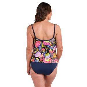 Maxine of Hollywood’s tankini top is a must-have for your summer wardrobe. With its adjustable straps and tiered design, it provides both comfort and style. Made from a blend of nylon and elastane, this top is quick-drying and durable, perfect for a day at the beach or pool. The ornamental garden print adds a touch of elegance to this versatile top. Pair it with your favorite swim bottoms for a complete look.