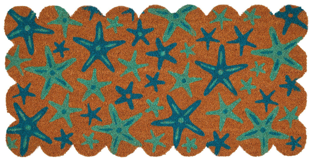 Introducing the 20×40 Scalloped Starfish Coir Door Mat, a charming addition to your entryway. Made from durable coir, this mat features scalloped edges and a delightful starfish print, adding a touch of coastal charm to your doorstep. It effectively traps dirt and moisture, keeping your home clean while brightening up your entrance.