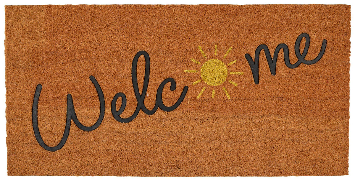 Introducing the 20×40 Welcome Sun Coir Door Mat, a bright and cheerful addition to your entryway. Made from durable coir, this mat features a welcoming sun design that adds a touch of warmth and positivity to your doorstep. It effectively traps dirt and moisture, keeping your home clean while creating a sunny, inviting atmosphere.