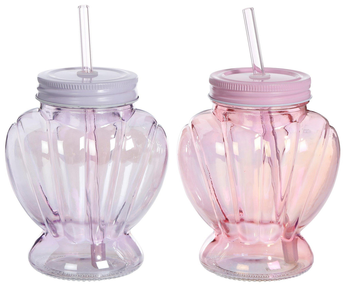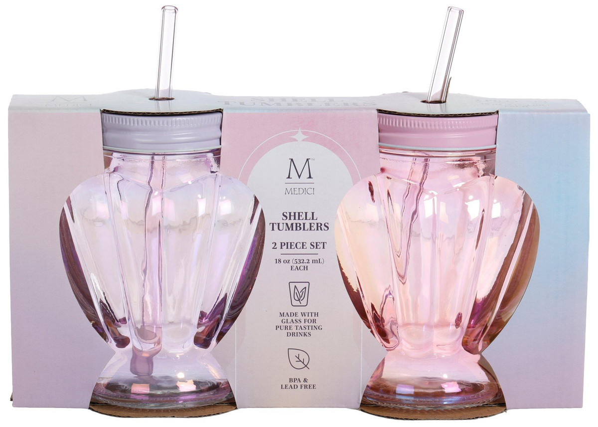 Sip in style with these 2 Pk of 18 Oz Clear Glass Shell Tumblers! Featuring a cute shell design, a colorful iridescent hue and a matching straw. Designed with scratch resistant glass and is lead and BPA-free. Perfect for adding charm to your daily hydration. Made with glass for pure tasting drinks! Fabrication is 100% glass. Each holds 18 fl oz. Measures approximately (without straw) 5.5 in x 5 in x 3 in.