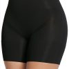 This 2-pack of thigh shaper underwear features a solid color design on soft comfortable nylon, a high waist to smooth the stomach area, and short shorts to provide full rear coverage and upper thigh shaping. Style # MJBS-108.