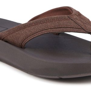 The Carver Squish flip-flops have a multi-layer polyurethane coated strap with a soft REPREVE recycled polyester lining. The nylon toe separator is made of regenerated Econyl nylon fibers. The hydrobound insole is extra thick for greater comfort and wearability, making them more durable. The midsole is wrap-around and molded with built-in arch, heel and forefoot support. The outsole is an inflated rubber outsole with multi-angle notches with logo for increased traction.