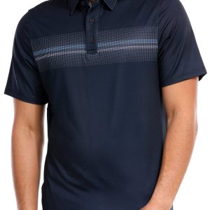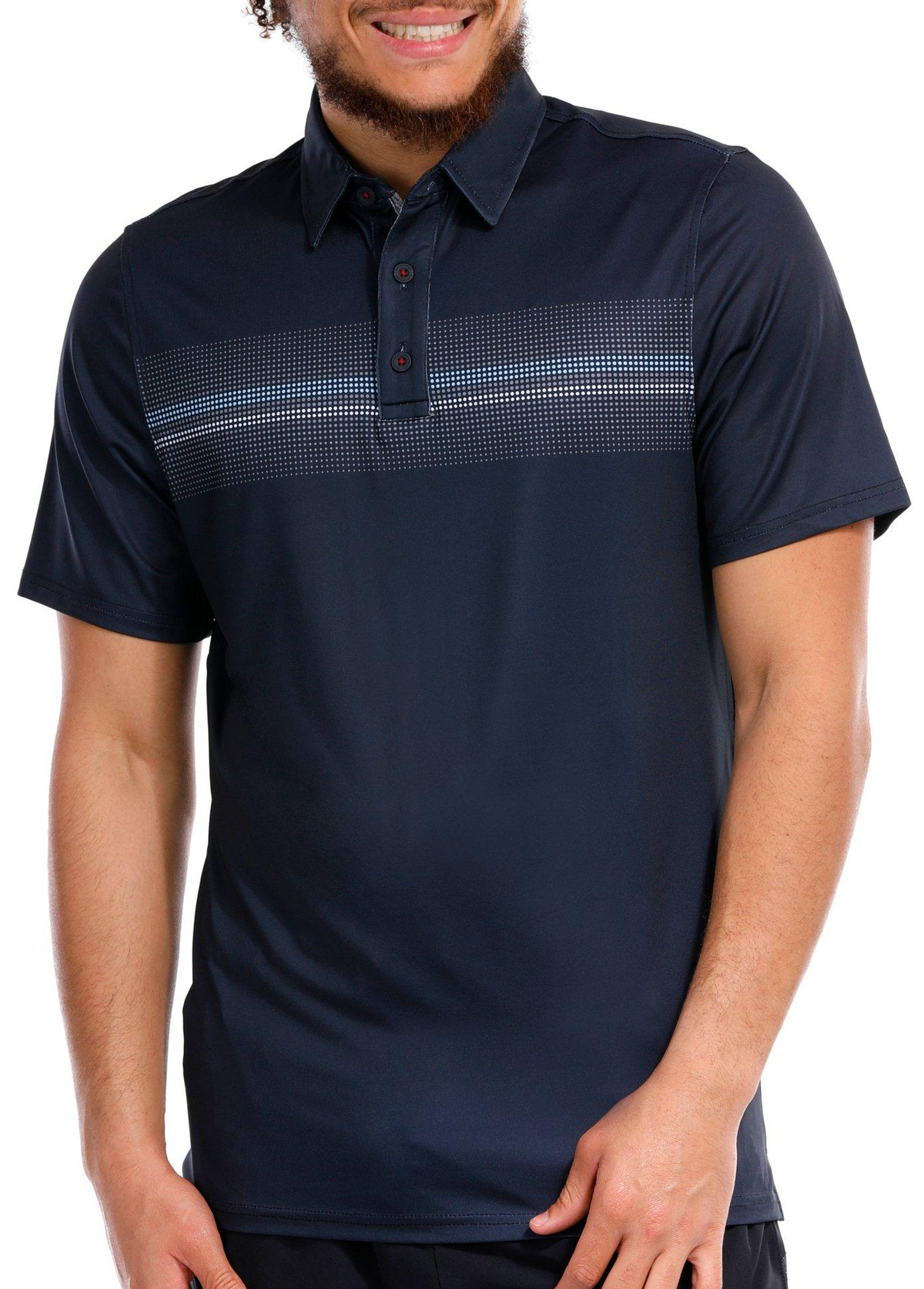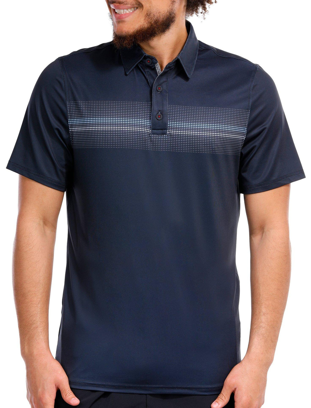 Elevate your activewear with this Short Sleeve Ombre Stripe Performance Polo Tee. Designed for ultimate comfort and style, this tee features UPF protection to shield you from harmful UV rays, while its stretch fabric ensures a perfect fit. The moisture-wicking technology keeps you dry and fresh, making it ideal for any activity. The ombre stripe pattern adds a modern touch, making this polo tee a versatile addition to your wardrobe. Fabrication is 89% polyester, 11% spandex.