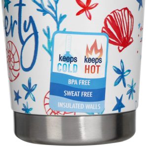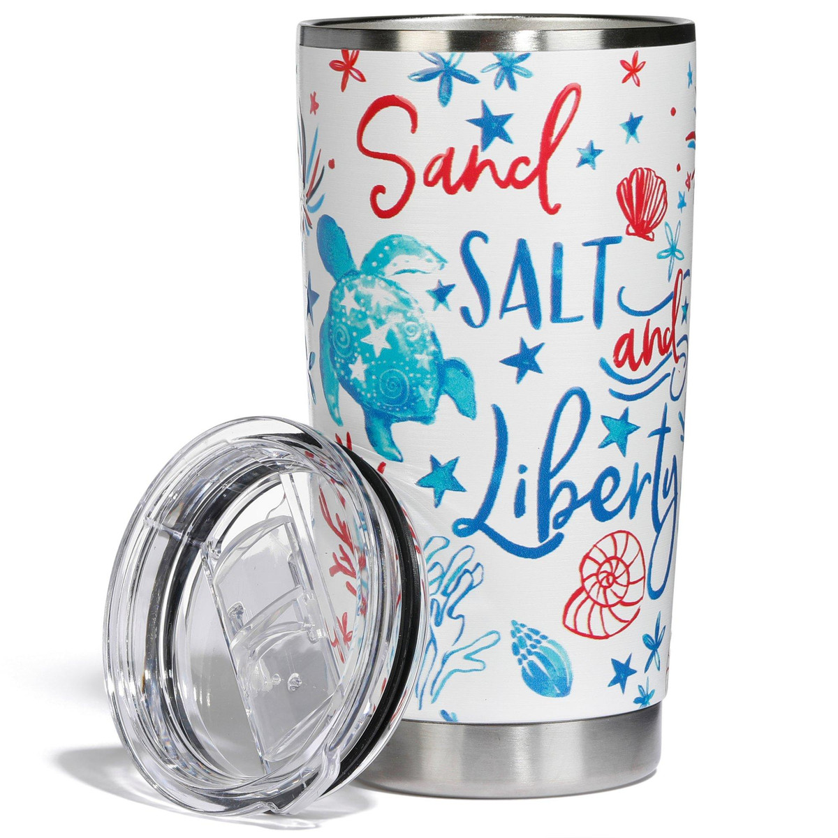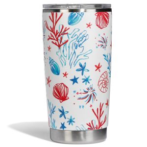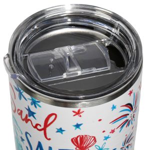Celebrate in style with this Americana-themed stainless steel tumbler! Designed with double-wall insulation to keep drinks hot or cold for hours, this BPA-free tumbler features a sweat-free exterior and a secure lid for on-the-go convenience. With bold patriotic prints and durable construction, its the perfect companion for summer adventures, road trips, or backyard BBQs. Capacity is 20 FL. OZ.
