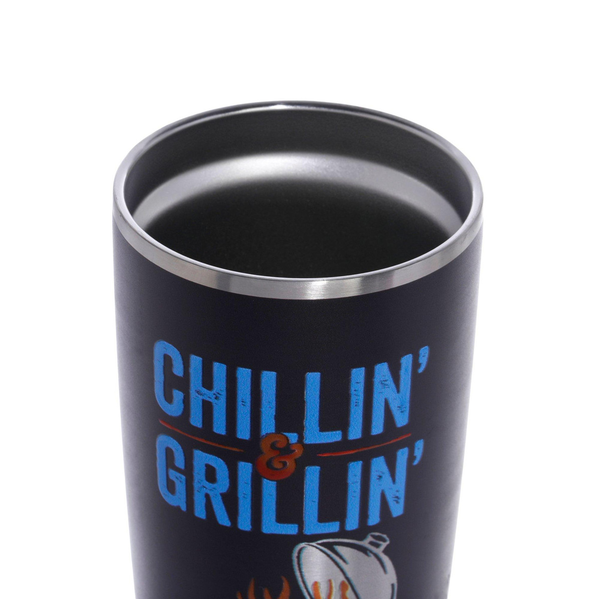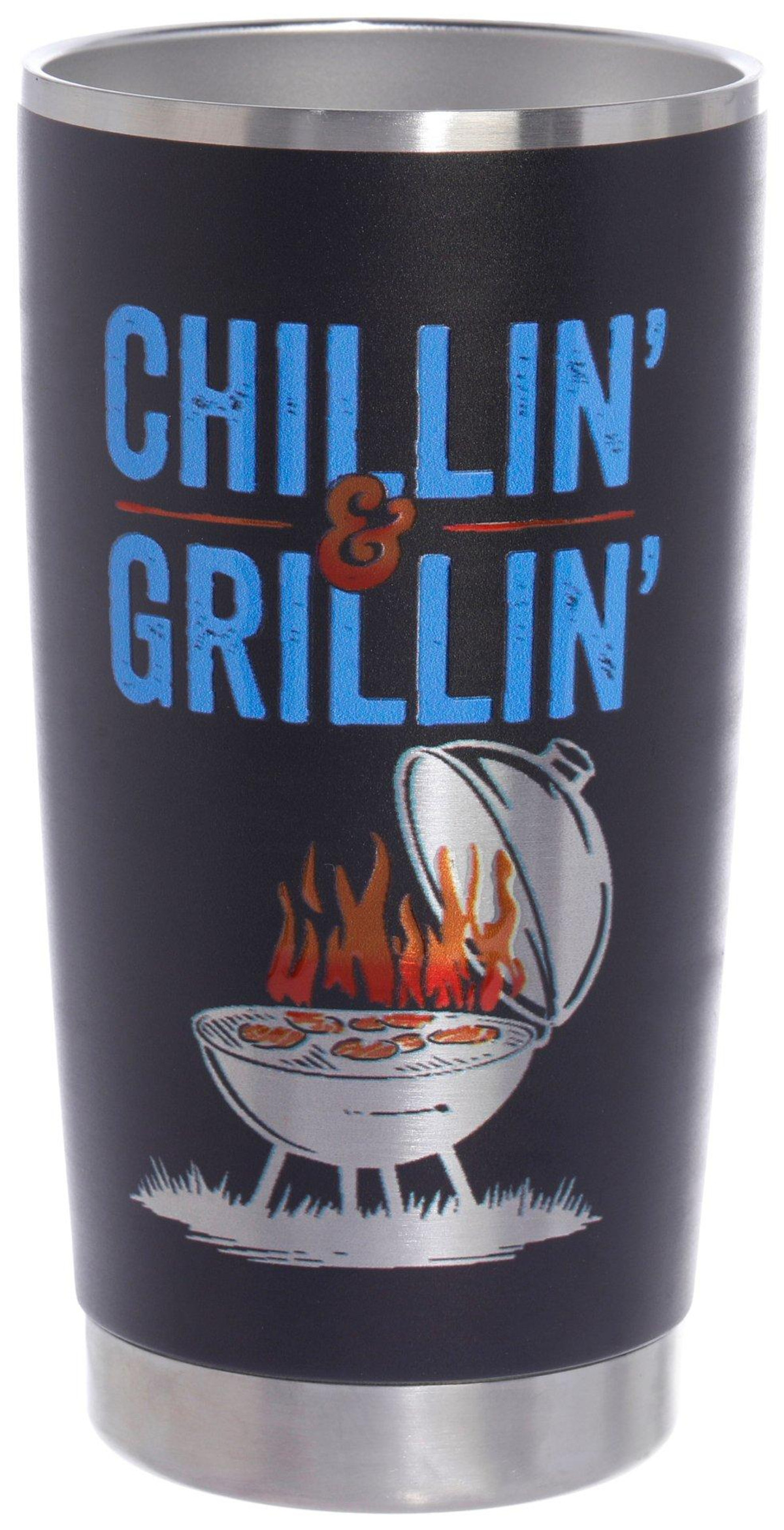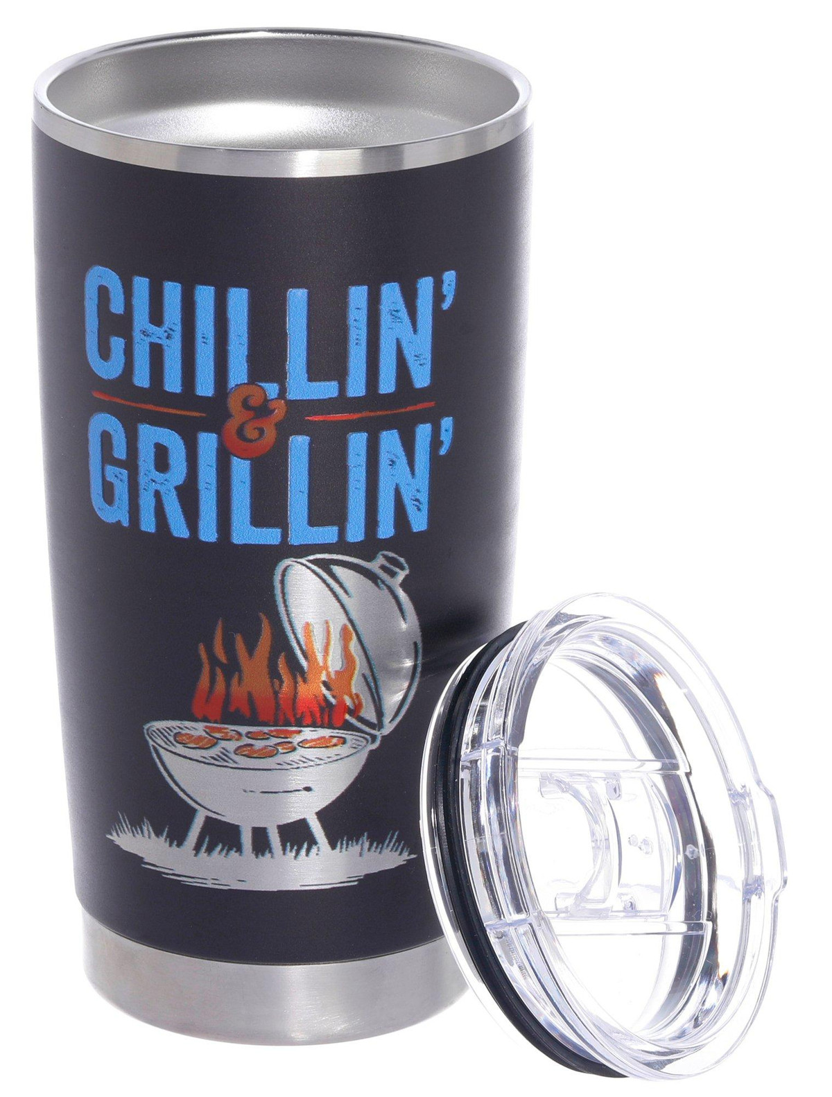 Meteor drinkware and accessories are durable and reliable with a splash of artwork that makes them stylish as well. This travel tumbler keeps drinks hot or cold longer, reduces condensation, and features a Grillin Chillin script. Spill-proof lid included. Holds 20 oz.