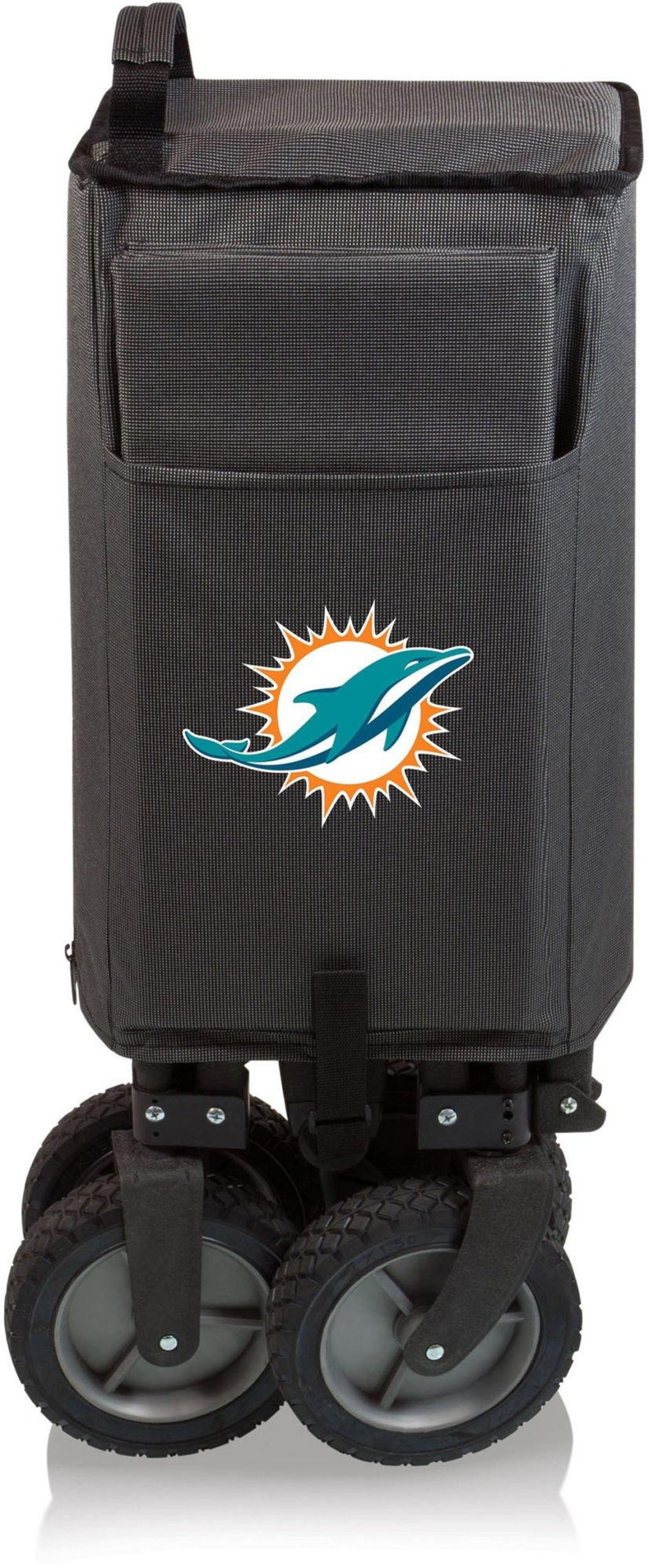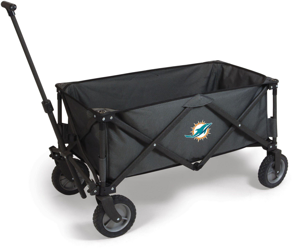 The Adventure Wagon is a utility wagon with heavy-duty wheels & telescopic handle that folds into a compact size and includes a fitted cover. Made of 600D polyester with a powder coated steel frame. Measures: 35.6” x 18.9” x 21.9” open, 10” x 11” x 30” closed.