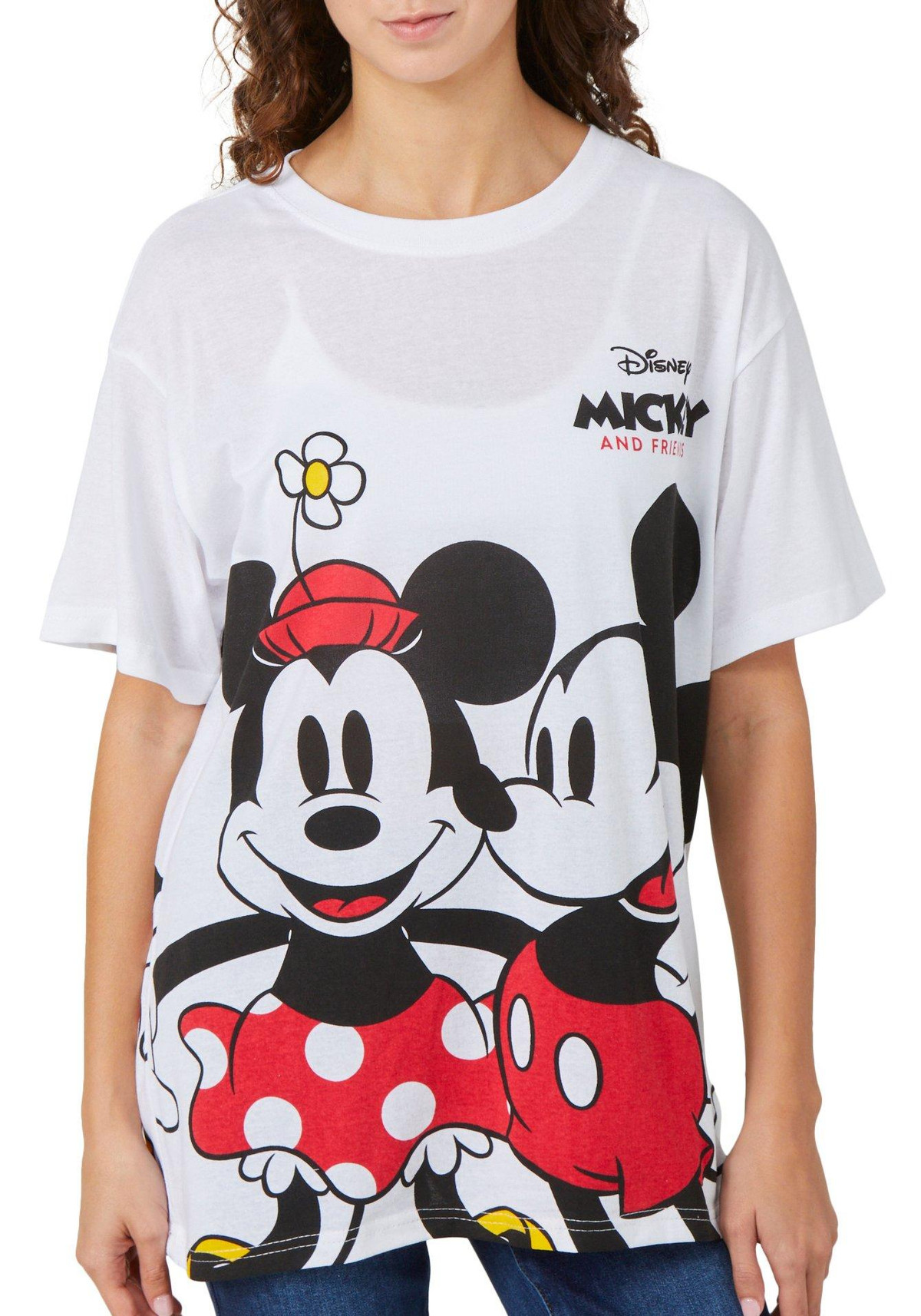 Celebrate classic love with the Juniors Mickey & Minnie Graphic Tee. This charming tee features a comfy crew neckline, short sleeves, and a playful screen print of Mickey and Minnie. Fabrication 60% cotton, 40% polyester