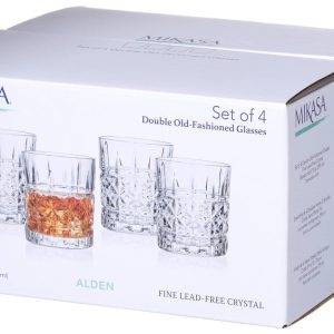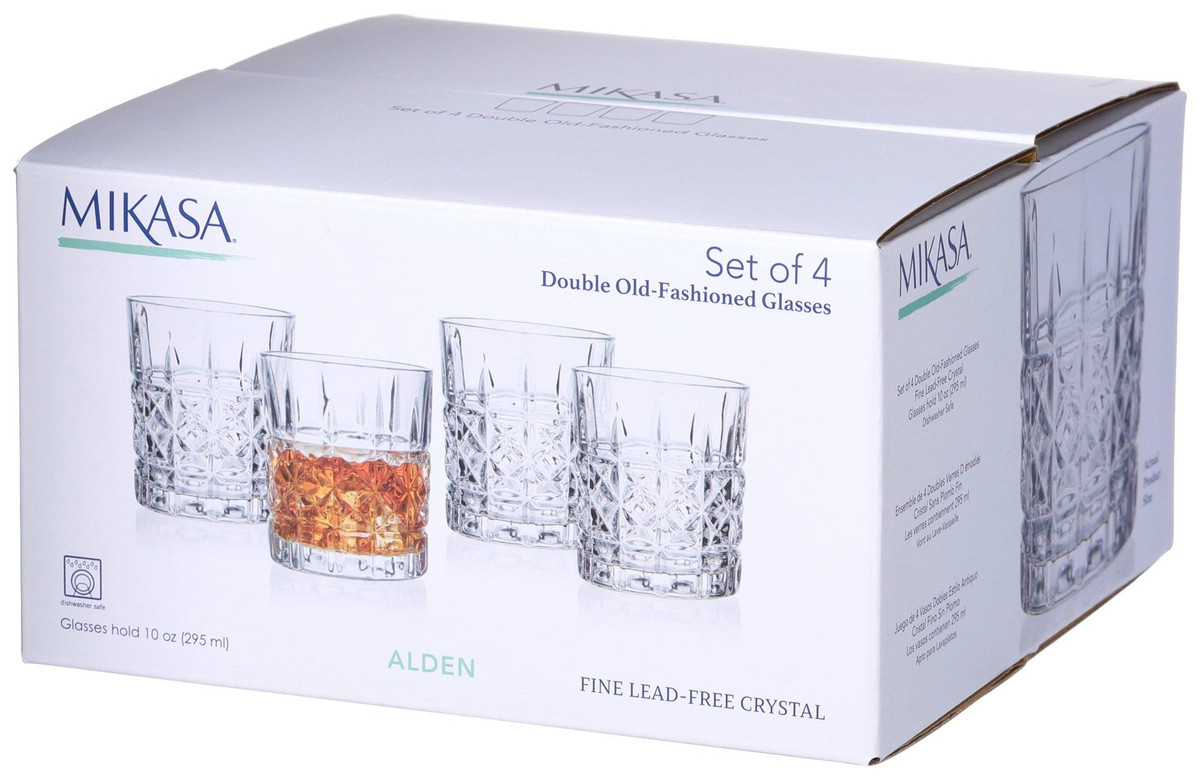 Sip in style with the Mikasa Alden double old fashioned glasses. This set features a sleek, modern silhouette with gently flared curves and a wide base for stability. Crafted from lead-free crystal and dishwasher safe, each glass holds up to 10 ozperfect for whiskey, cocktails, or even stemless wine. A refined addition to any barware collection.