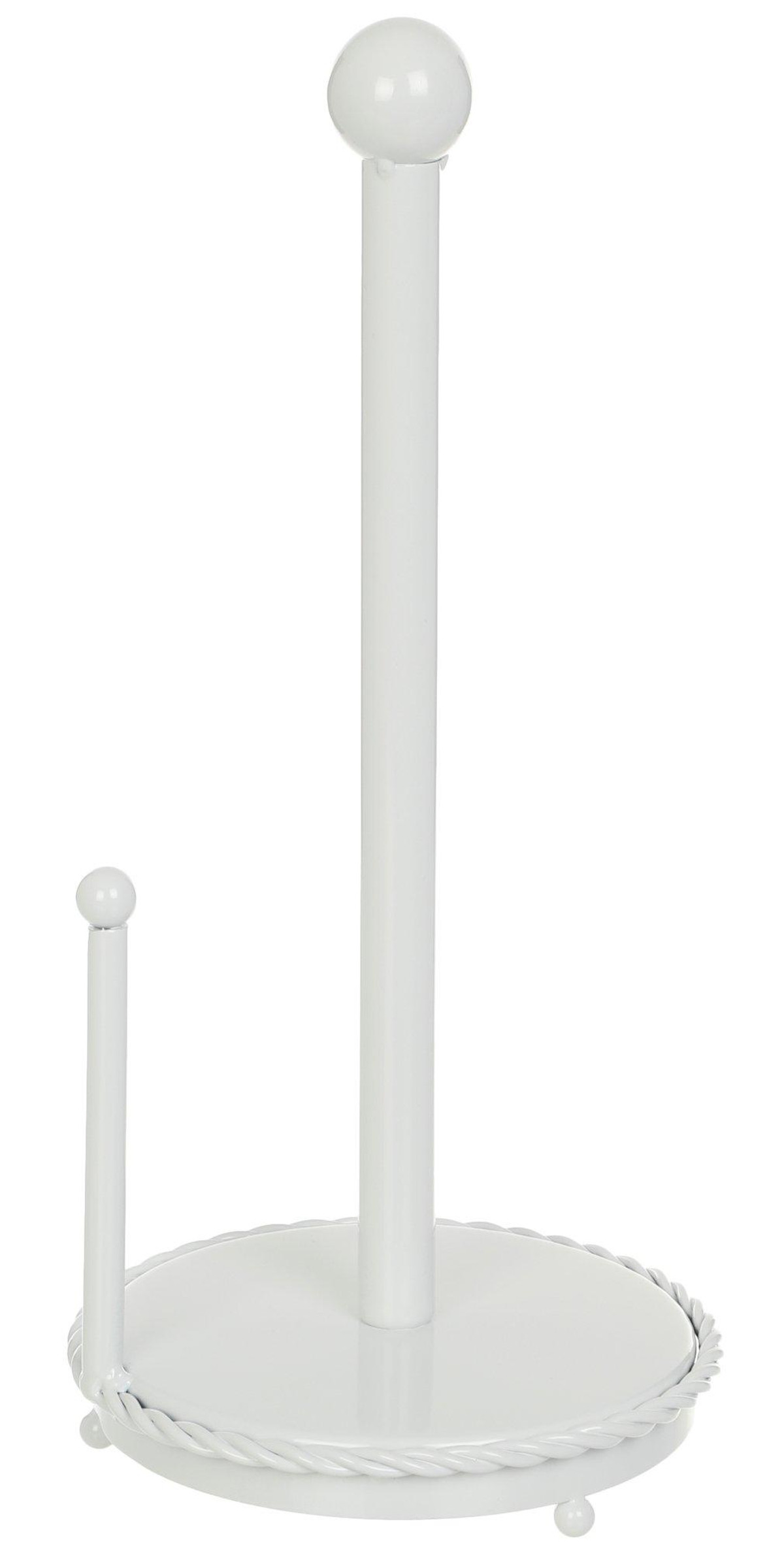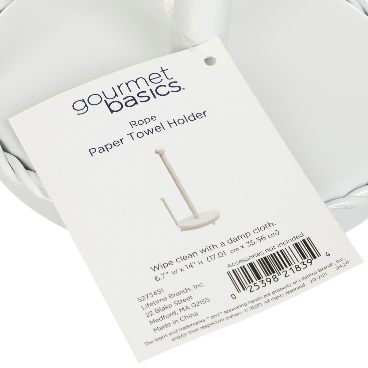 Add a new dependable essential to your kitchen with this paper towel holder. It features a simple solid color design, durable metal build, and a rope detail. Measures 6.7 in x 14 in.