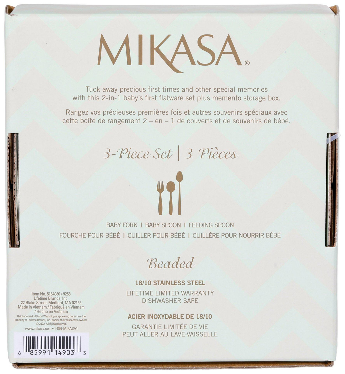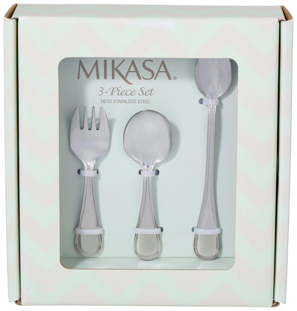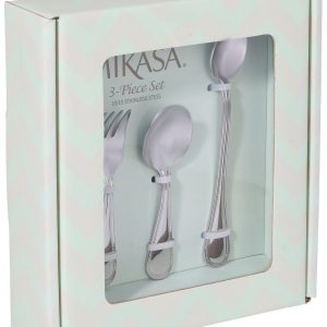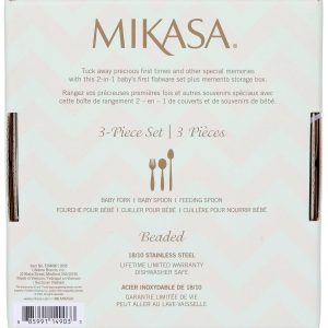 Create lasting baby memories with the Mikasa Beaded 3 Piece Feeding Set, crafted from 18/10 stainless steel for durability and gentle use. Perfectly sized for tiny hands, this charming set features a classic beaded border and includes a baby spoon, baby fork, and feeding spoon. Dishwasher safe and ideal for first meals or gifting, it’s a thoughtful keepsake for new parents.