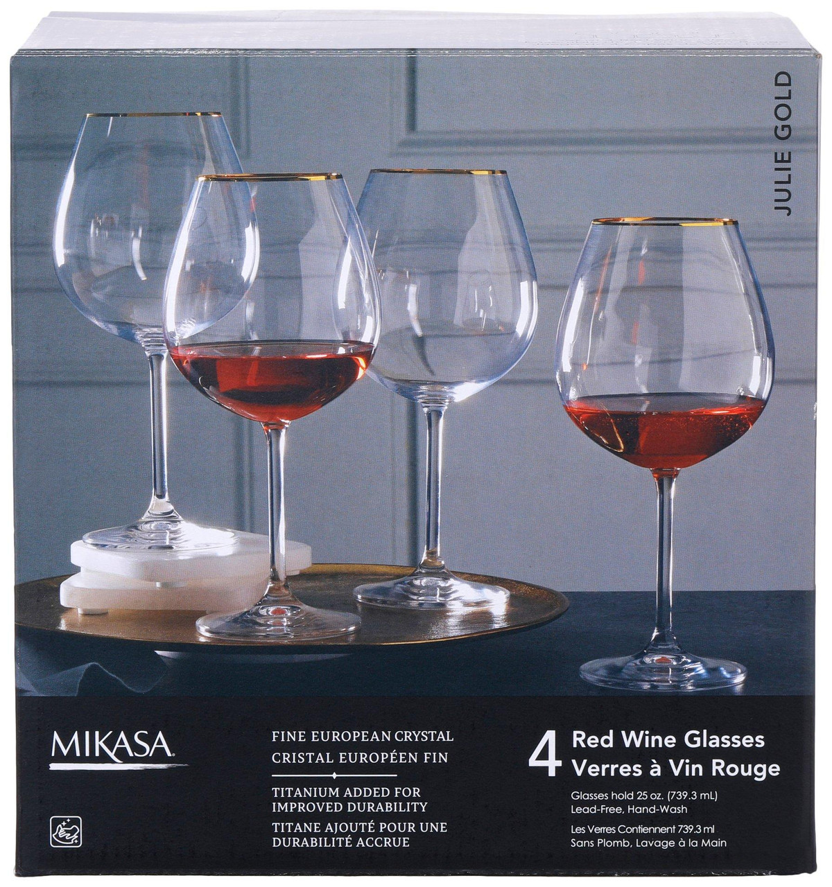 Mikasa Julie Gold Set of 4 Red Wine Glasses 25 oz