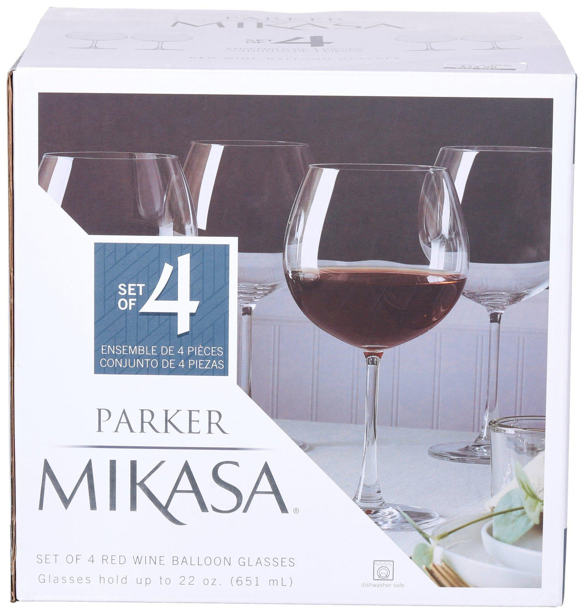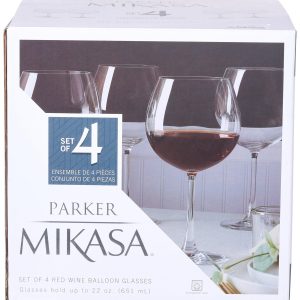 Serve your reds with refined style using the Mikasa Parker red wine balloon glasses. This set of four features a traditional rounded bowl and slender stem, crafted from lead-free crystal for clarity and brilliance. Each glass holds approximately 22 oz, making them ideal for bold red wines. With a clean silhouette and durable construction, theyre perfect for both everyday enjoyment and elegant entertaining.