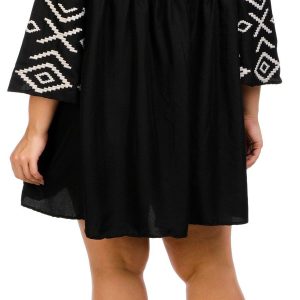This plus size dress is made of 100% rayon and features long sleeves, a keyhole neckline, and an embroidered pattern. With its’ soft fabric and elegant details, it offers a comfortable and stylish look for any occasion.