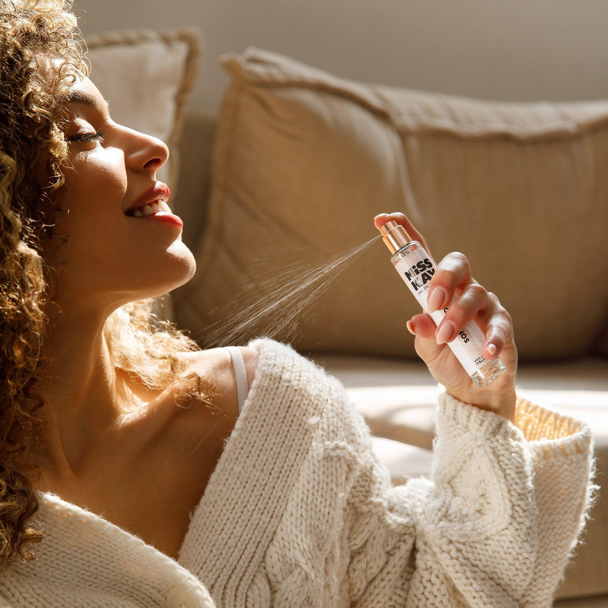 The soothing tones of this clean, delicate fragrance Soft Cuddle EDP by Miss Kay make it seem like a serene winter wonderland outside. Curl up under a thick blanket, sip a mug of smooth hot chocolate, relax in the warm cozy comfort of flickering firelight. Top note: Tonka, Rice Powder, Milky Notes. Heart note: Rose, Water Jasmine, Heliotrope . Background note: Musk, Amber. Spray and comb it in your hair, so that every time you move your head you will spread your vibe around!